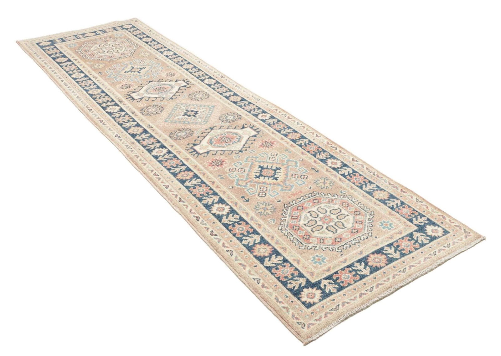 Kazak Teppich | Knotendichte: ca. 100.000 Knoten/m² | Material: 100% Schurwolle und 100% Baumwolle | Größe: 87 x 293 cm | Zustand: Handgeknüpft | Herkunft: Pakistan | Muster: Geometrische Figuren und Muster