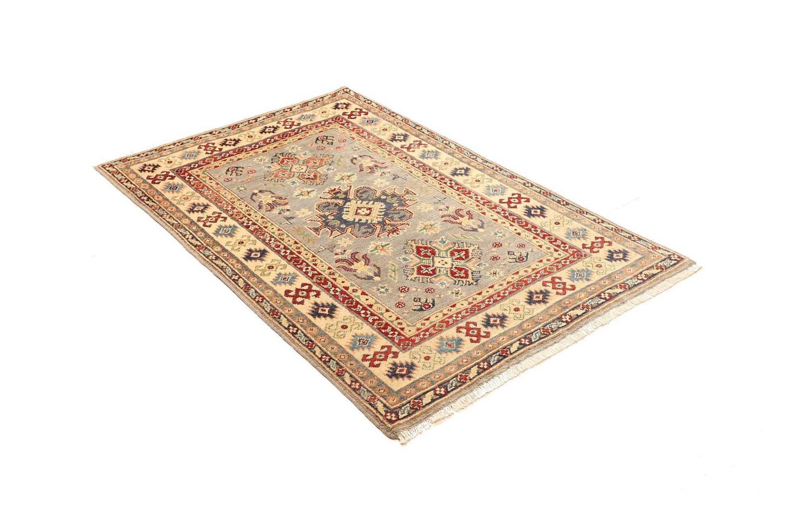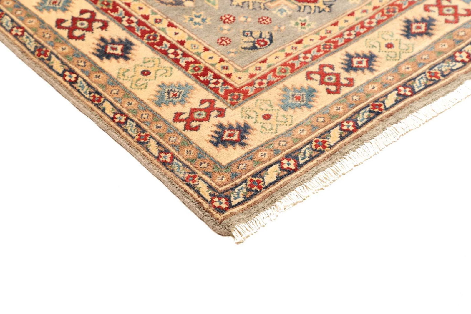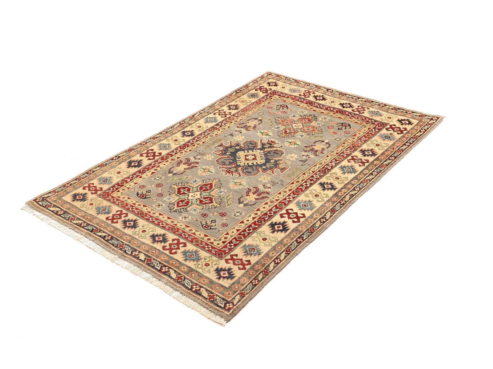 Der Kazak Orientteppich wird aus hochwertigen, natürlichen Materialien hergestellt, die seine Strapazierfähigkeit und seinen Komfort gewährleisten. Die Fasern sind sorgfältig ausgewählt, um eine weiche Haptik zu bieten, während sie gleichzeitig robust genug sind, um im Alltag bestandzuhalten. Die Kunst des Handknüpfens, die von erfahrenen Teppichknüpfern ausgeführt wird, garantiert eine präzise Verarbeitung und Detailgenauigkeit, die in maschinell gefertigten Teppichen nicht zu finden ist.