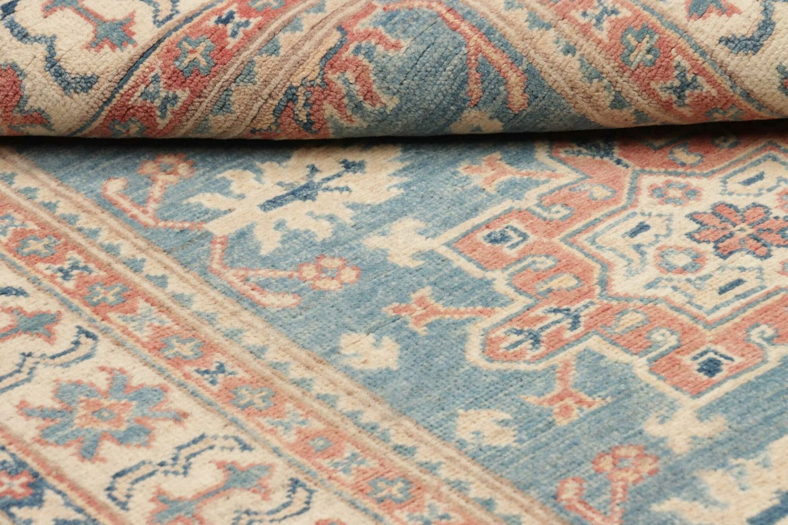 Mit seinem geometrischen Design fügt sich dieser Teppich wunderbar in verschiedene Einrichtungsstile ein – von traditionell bis modern. Ob im Wohnzimmer, Flur oder als Akzentstück im Schlafzimmer, der Kazak Orientteppich bringt Farbe und Struktur in jeden Raum und kann sowohl als Blickfang als auch als harmonische Ergänzung zur Einrichtung wirken.