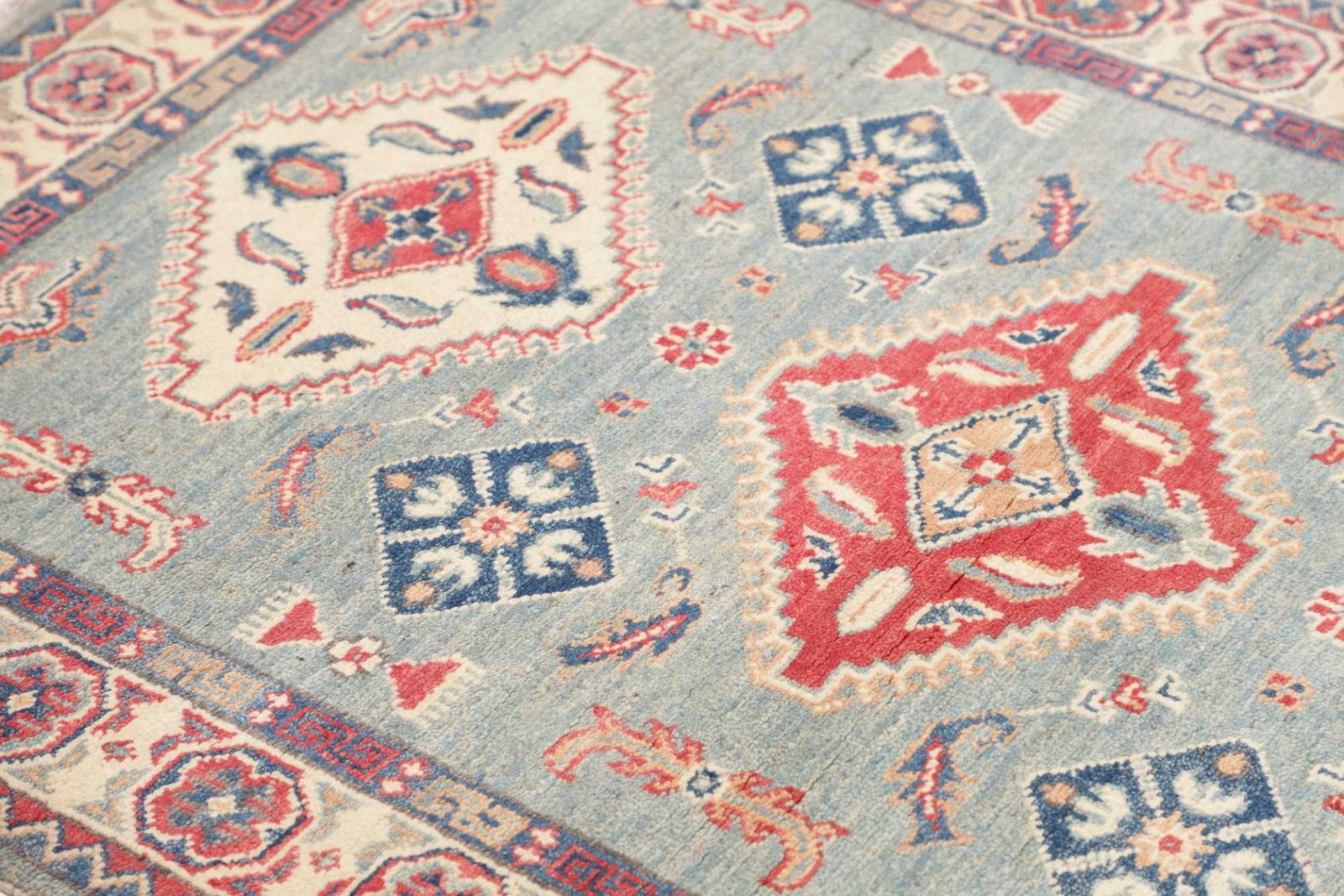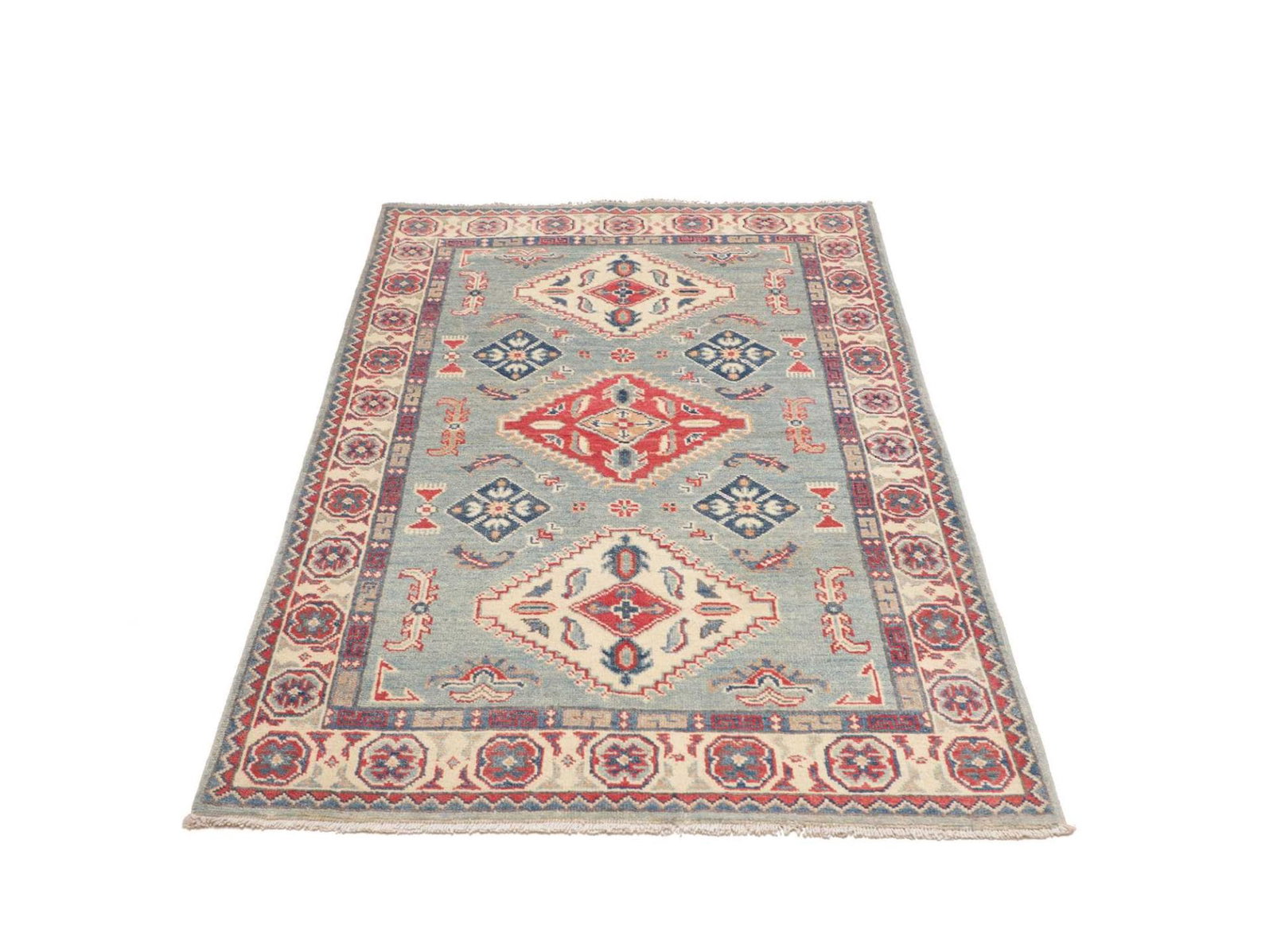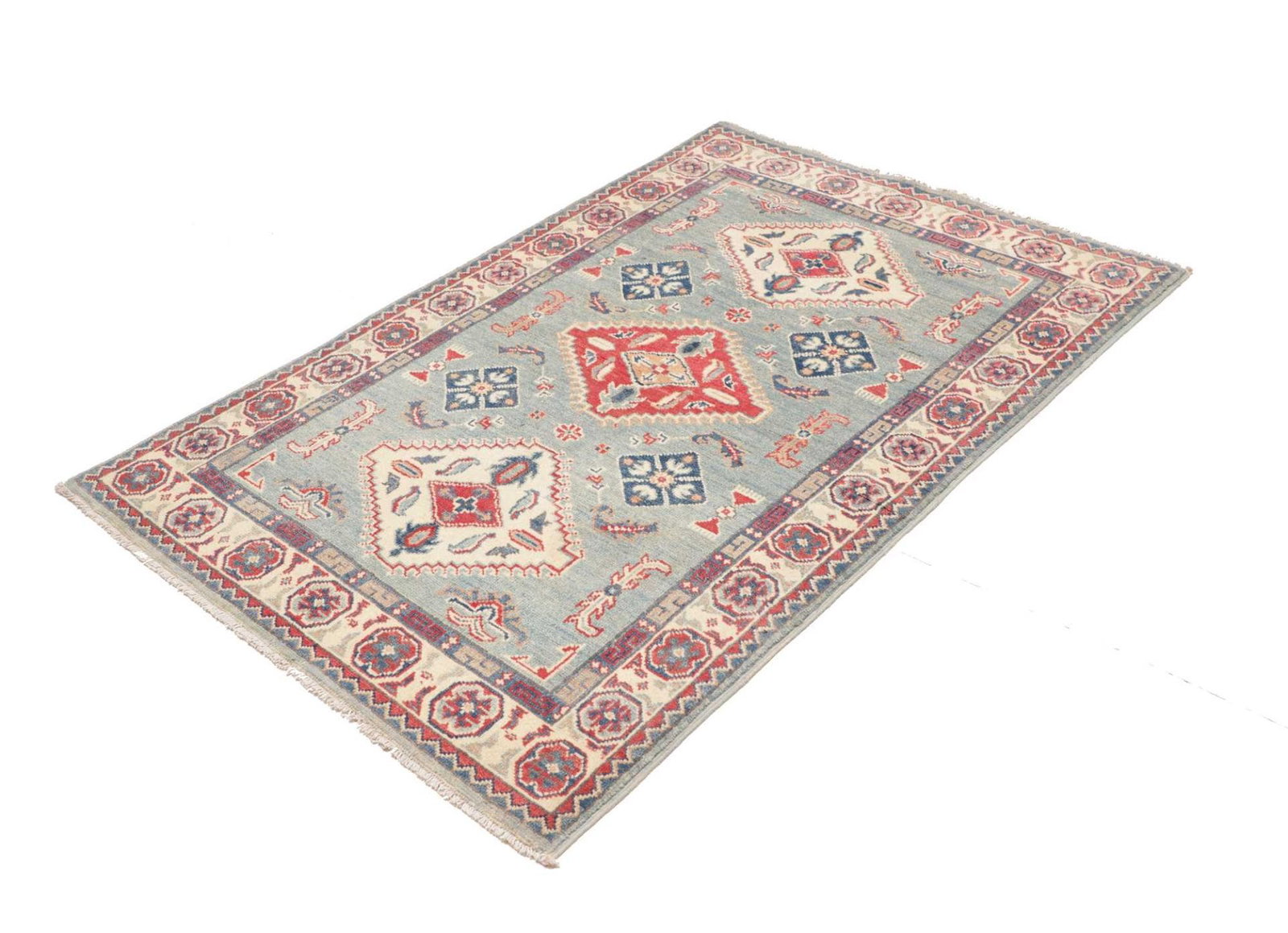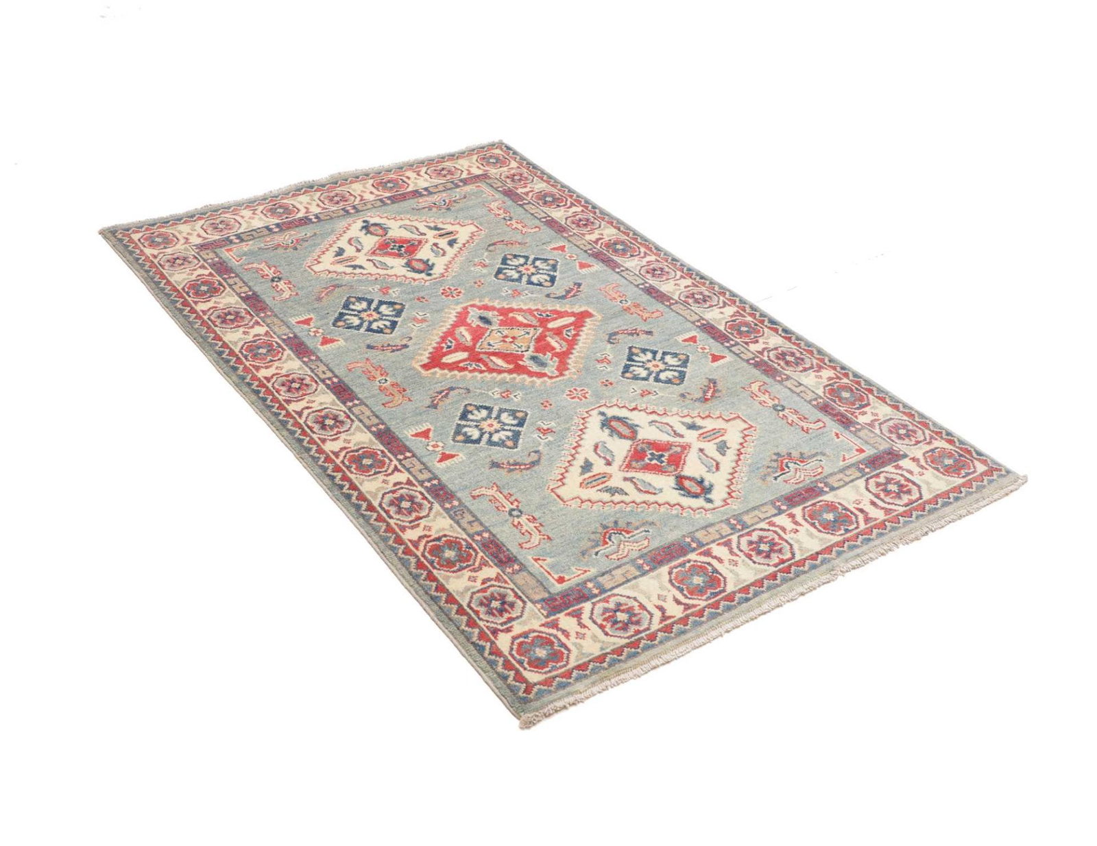 Kazak Teppich | Knotendichte: ca. 100.000 Knoten/m² | Material: 100% Schurwolle und 100% Baumwolle | Größe: 103 x 149 cm | Herkunft: Pakistan | Zustand: Handgeknüpft | Geometrische Muster und Figuren