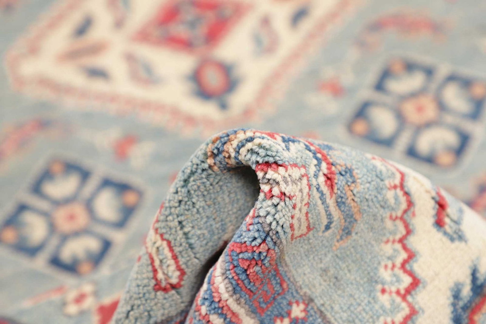 Der Kazak Teppich eignet sich hervorragend für Wohn- und Schlafzimmer, aber auch für Eingangsbereiche oder als dekorativen Akzent in Büros. Durch seine strapazierfähige Beschaffenheit ist er auch für stark frequentierte Räume geeignet.