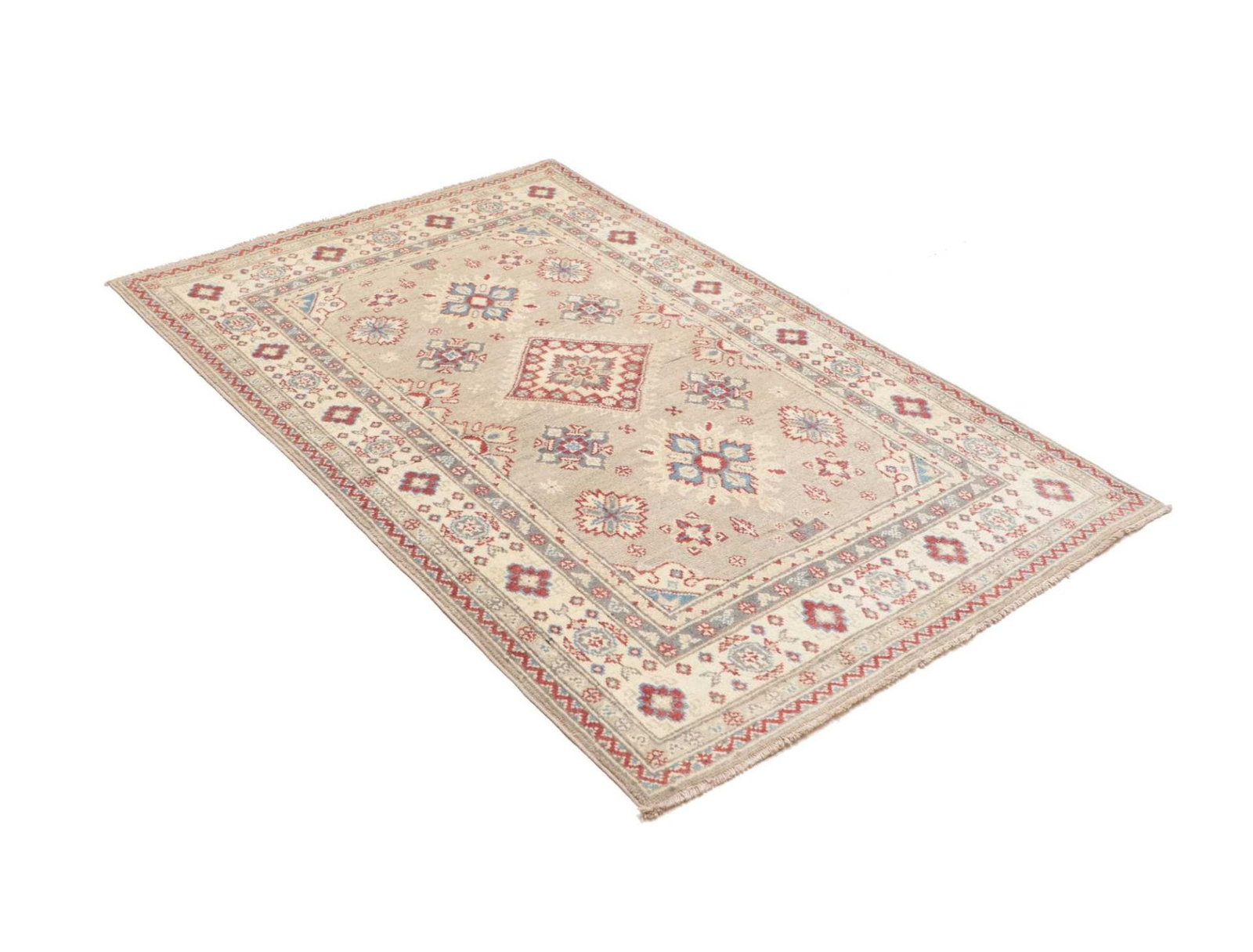Kazak Teppich | Größe: 106 x 153 cm | Knotendichte: ca. 100.000 Knoten/m² | Flor: 100% Schurwolle | Kette: 100% Baumwolle | Herkunft: Pakistan | Zustand: Handgeknüpft und von hoher Qualität