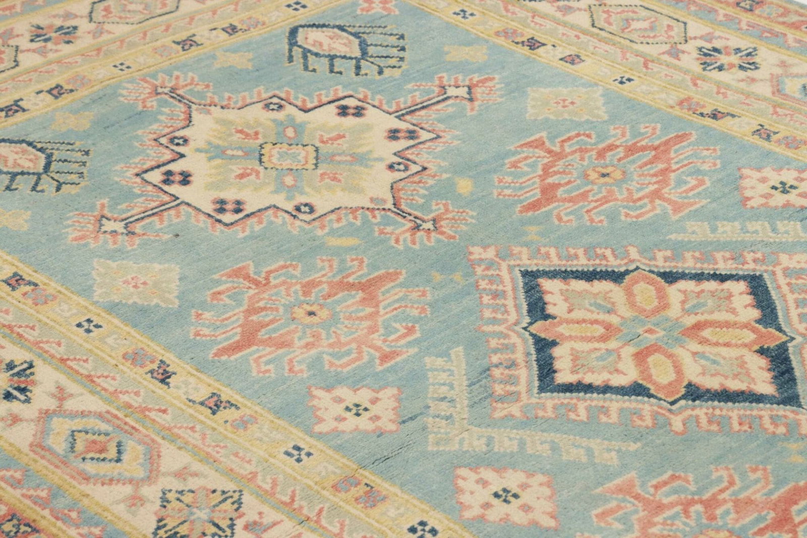 Kazak Teppich | Knotendichte: ca. 100.000 Knoten/m² | Material: 100% Schurwolle | Kette: 100% Baumwolle | Größe: 120×187 cm | Herkunft: Pakistan | Zustand: Handgeknüpft und in ausgezeichnetem Zustand