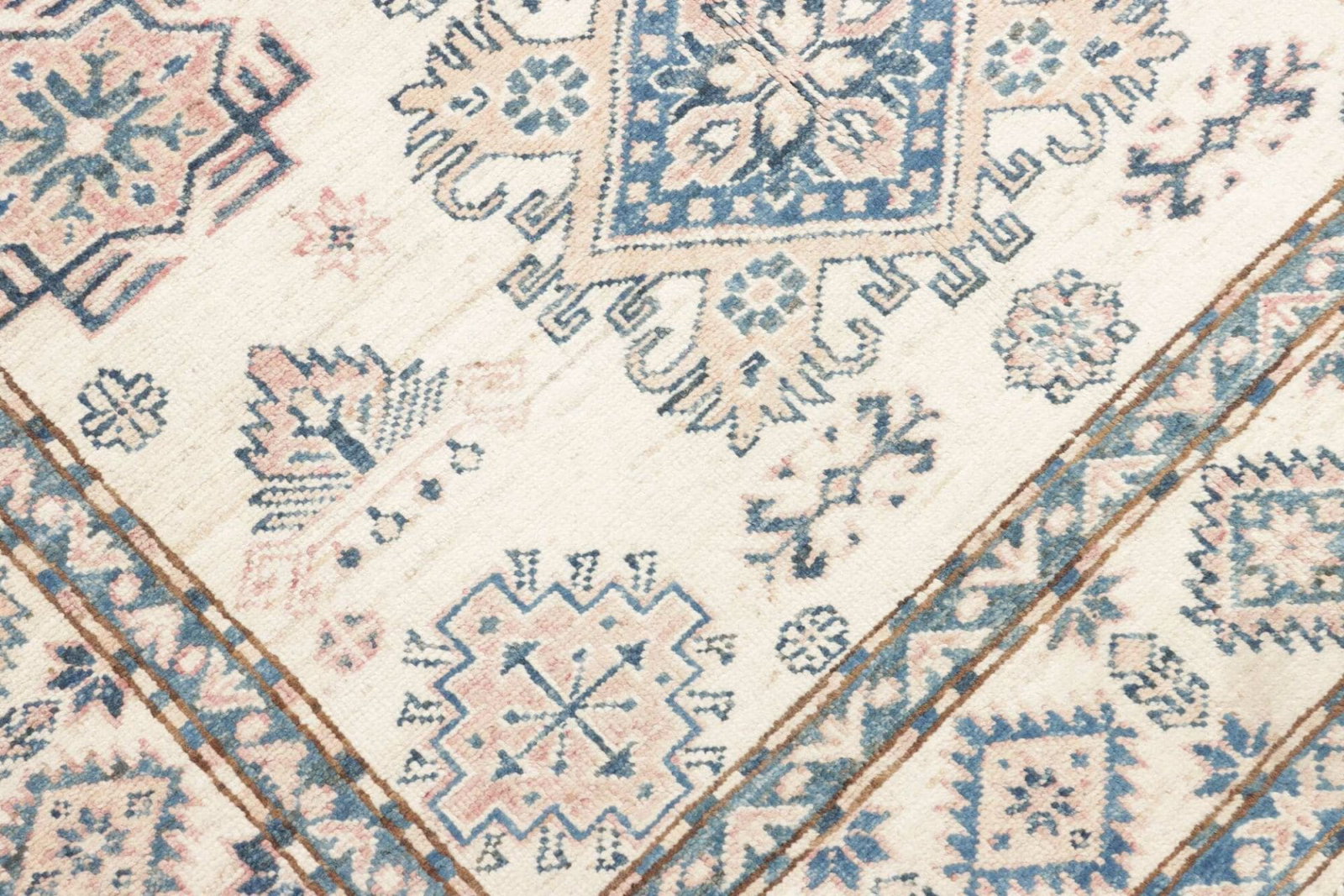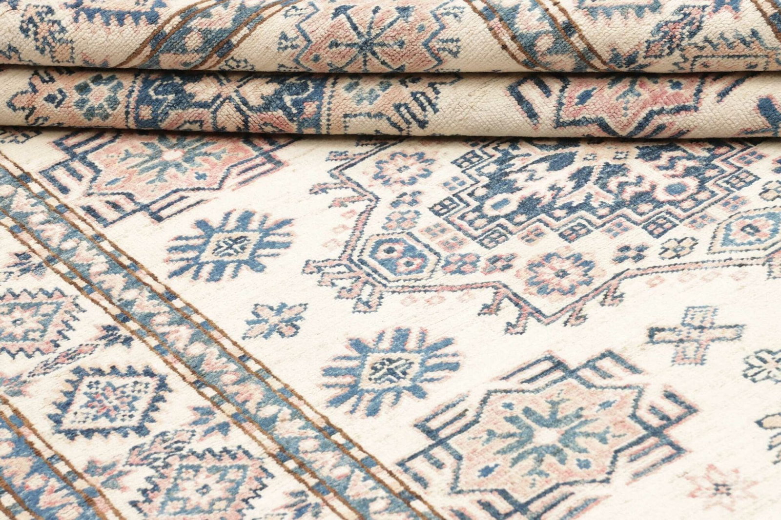Die Kombination von modernen und traditionellen Elementen macht diesen Teppich zu einem vielseitigen Möbelstück, das sich sowohl in klassischen als auch in modernen Wohnstilen integrieren lässt. Ein Kazak Teppich ist nicht nur schön, sondern auch zeitlos und bleibt über Generationen hinweg attraktiv.