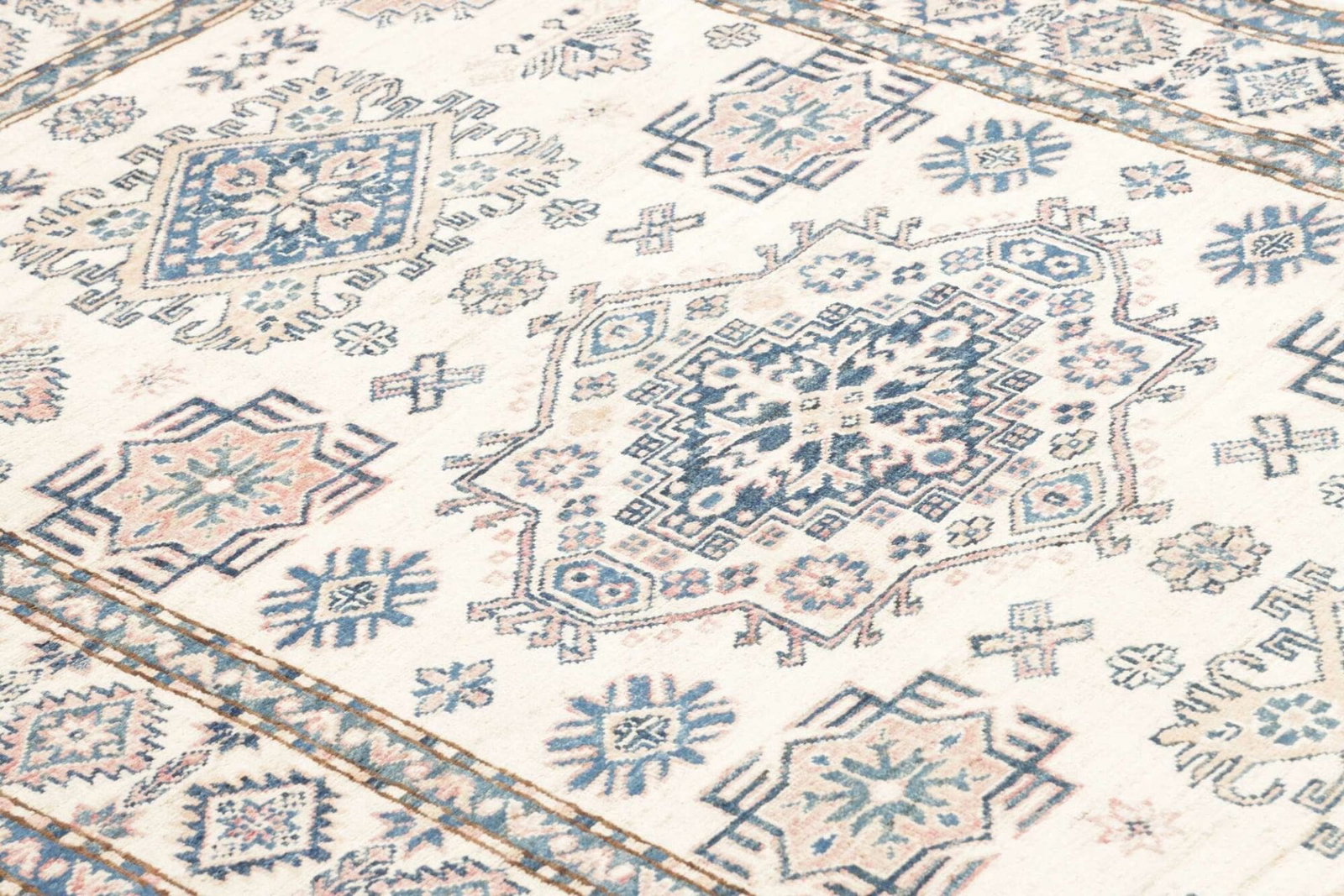 1819$Ursprünglicher Preis war: 1819$1267$Aktueller Preis ist: 1267$Kazak Teppich | Knotendichte: ca. 200.000 Knoten/m² | Material: 100% Schurwolle | Kette: 100% Baumwolle | Größe: 124 x 177 cm | Zustand: Sehr gut | Herkunft: Pakistan | Verarbeitung: Handgeknüpft | Geometrisches Muster mit traditionellen Figuren