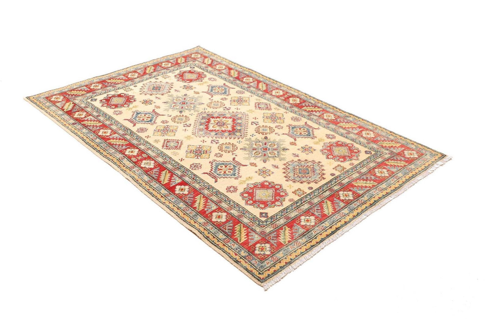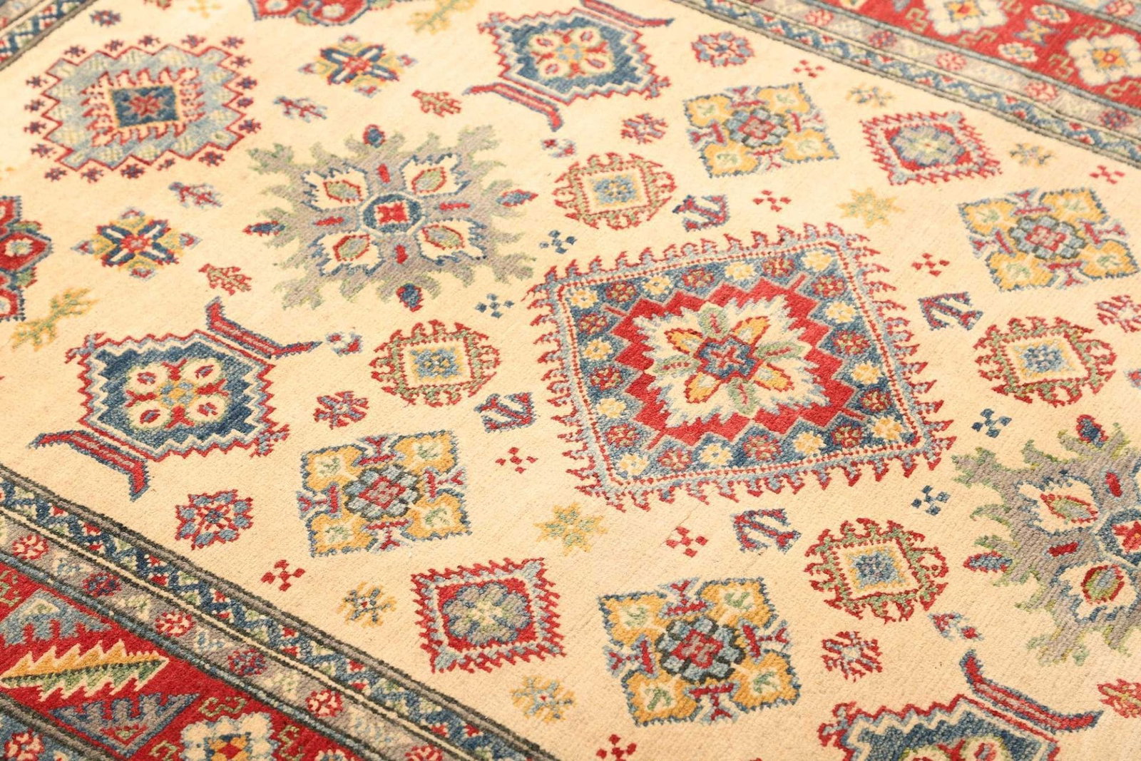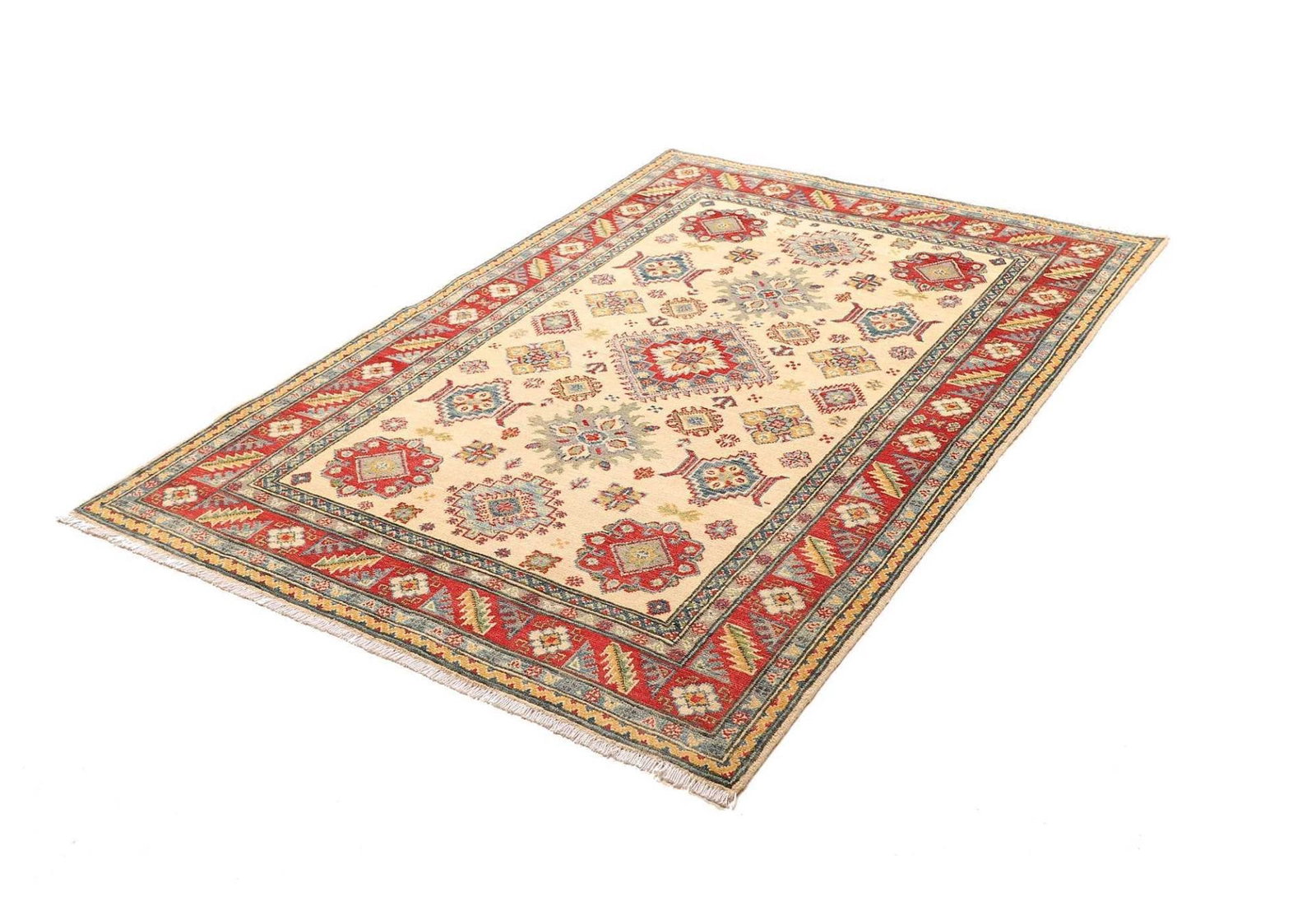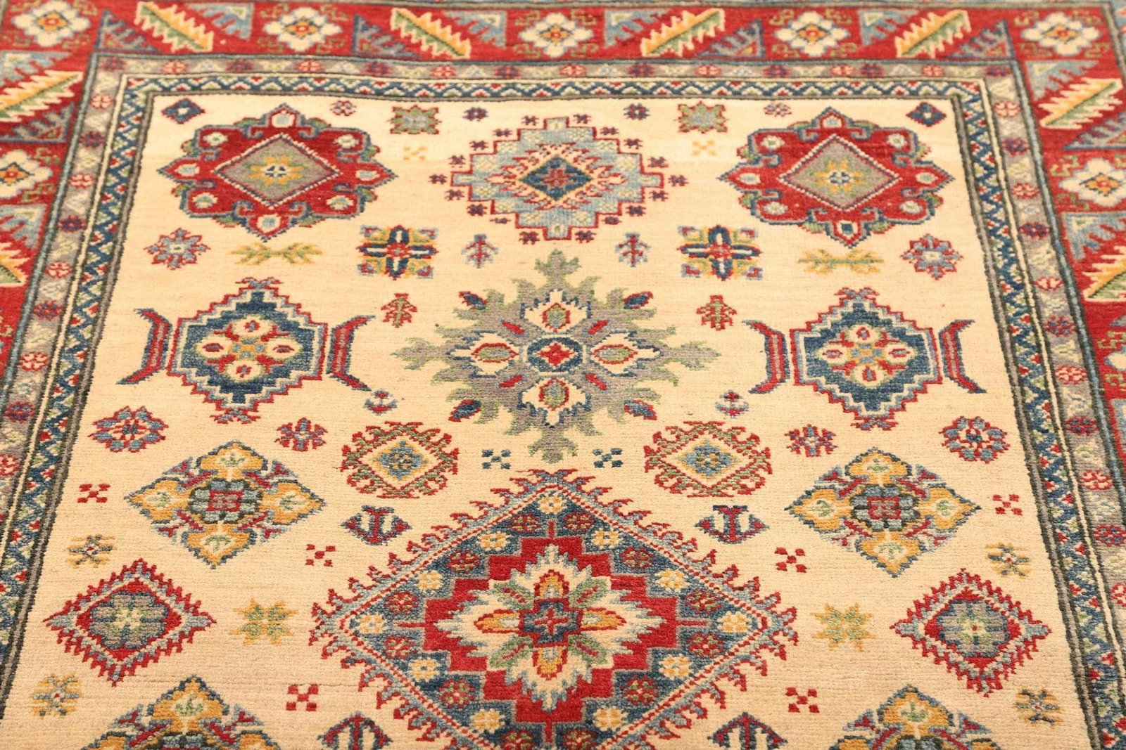 (Verkauft) Kazak Teppich 125 x 183cm, geometrisches Muster, handgeknüpft