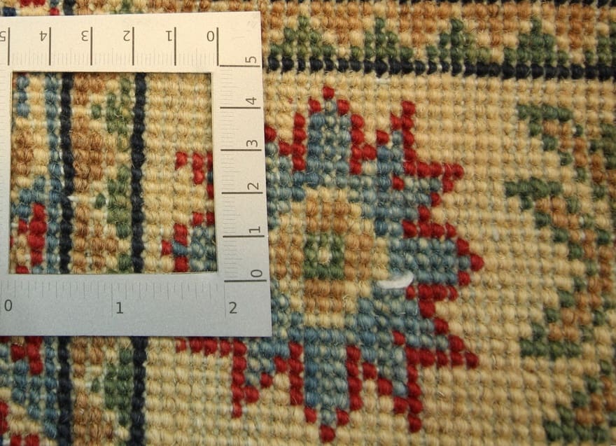 Der Kazak Teppich ist aus hochwertiger Schurwolle handgeknüpft, die für ihre Robustheit und Langlebigkeit bekannt ist. Die Verwendung von Wollmaterial gewährleistet nicht nur ein angenehmes Gefühl unter den Füßen, sondern auch eine ausgezeichnete Strapazierfähigkeit, die auch bei intensivem Gebrauch besteht. Die Knotendichte dieses Teppichs ist bemerkenswert hoch, was auf die sorgfältige Handarbeit und die Expertise der Teppichknüpfer hinweist. Jeder Knoten wird in aufwendiger Technik gesetzt, wodurch die feinen Details und das exquisite Muster hervorgehoben werden.