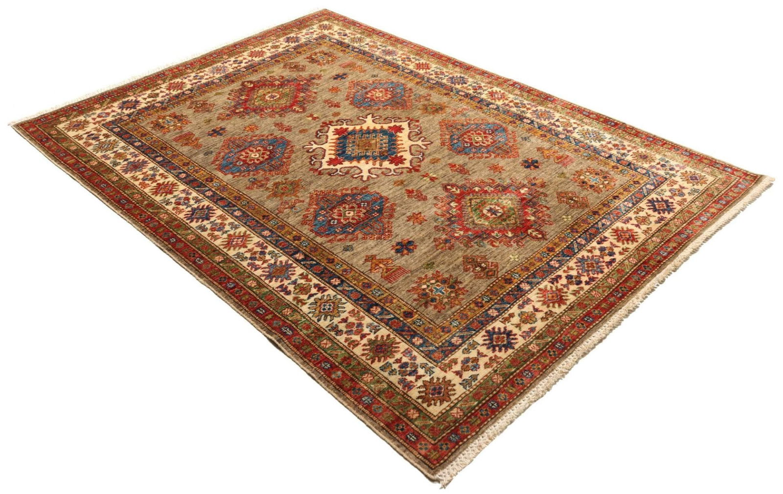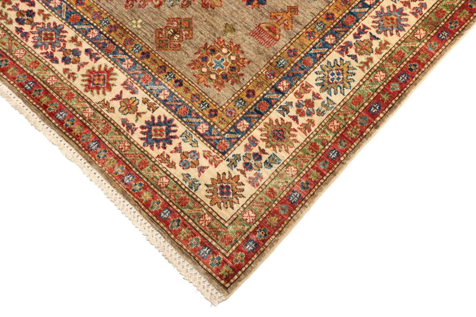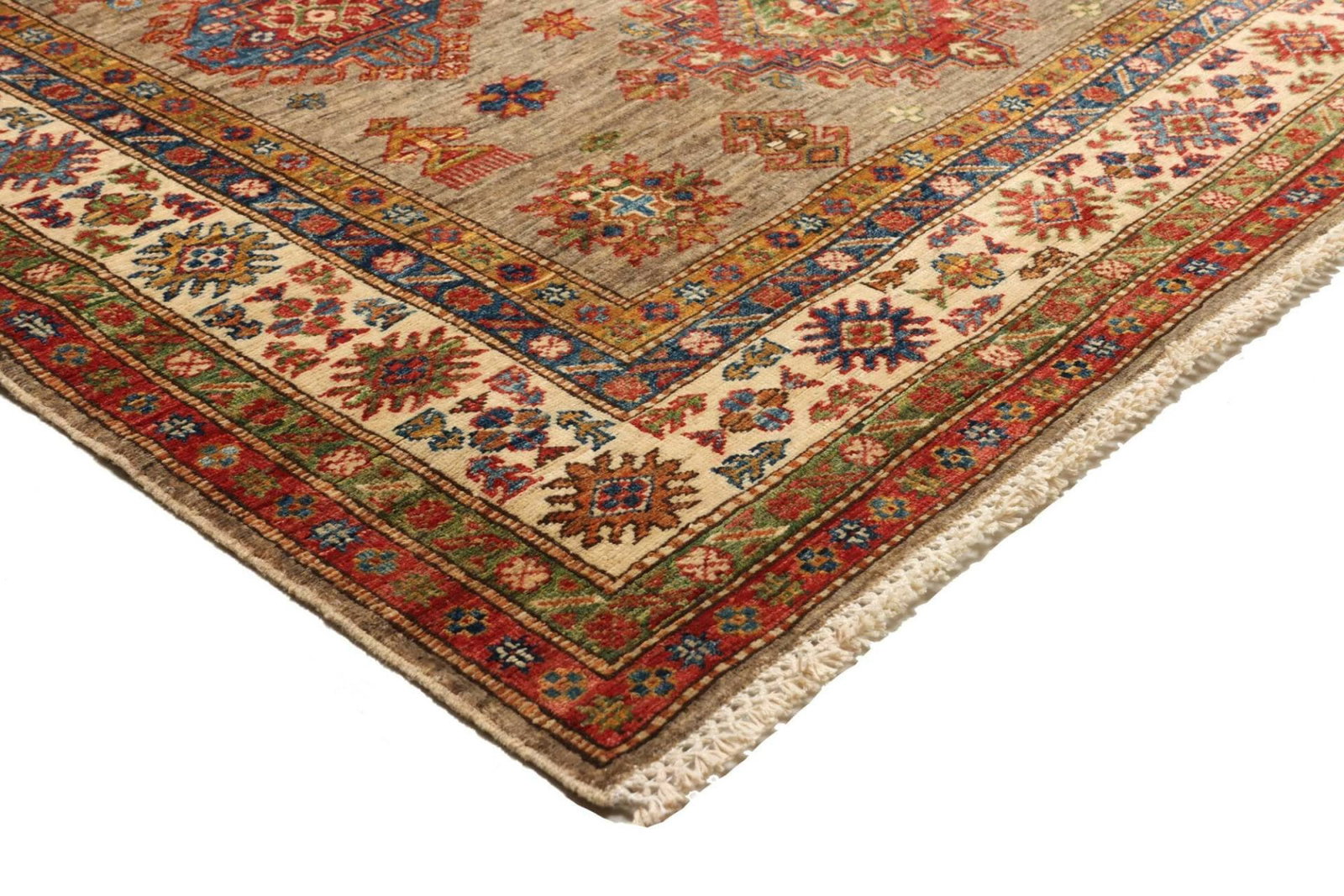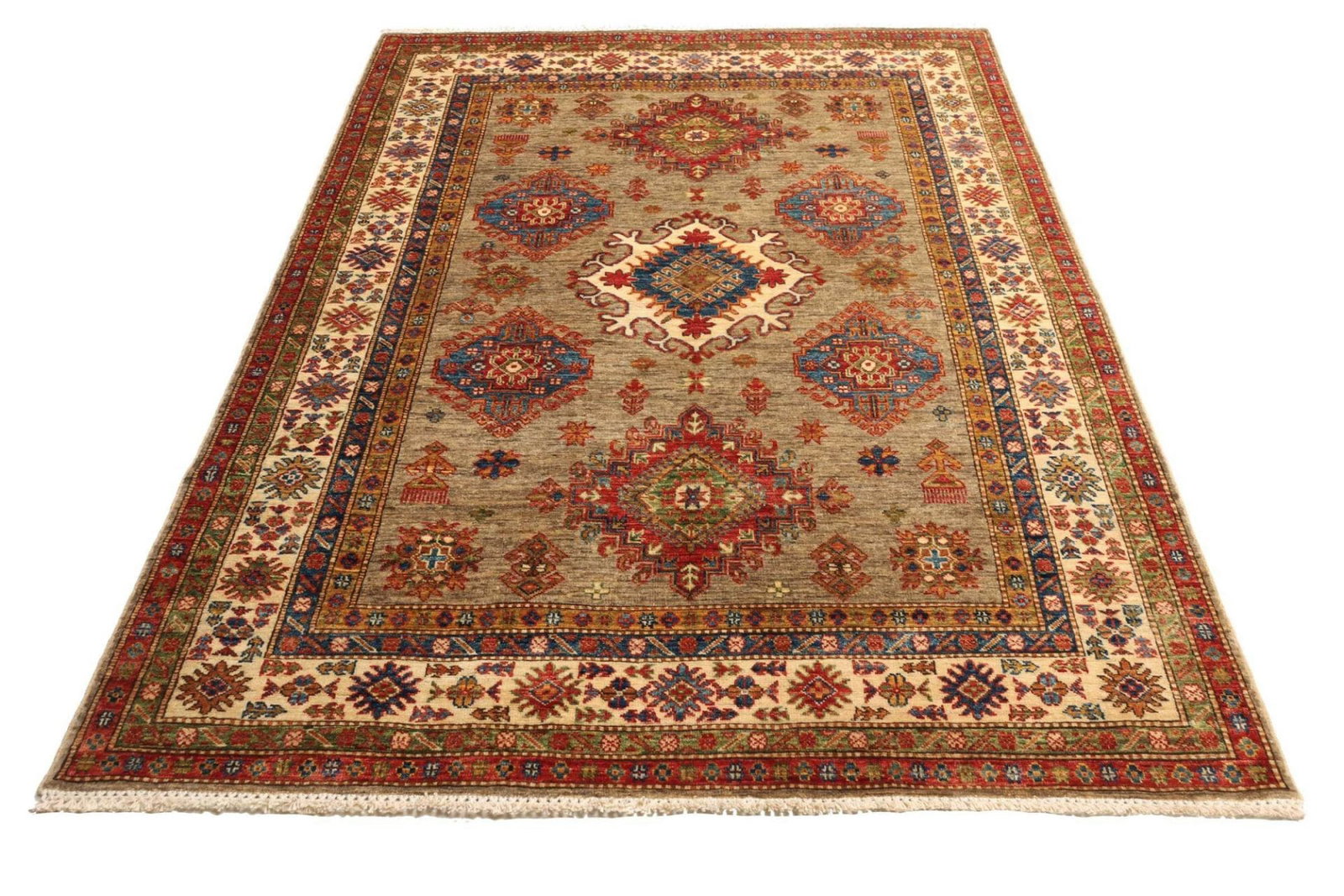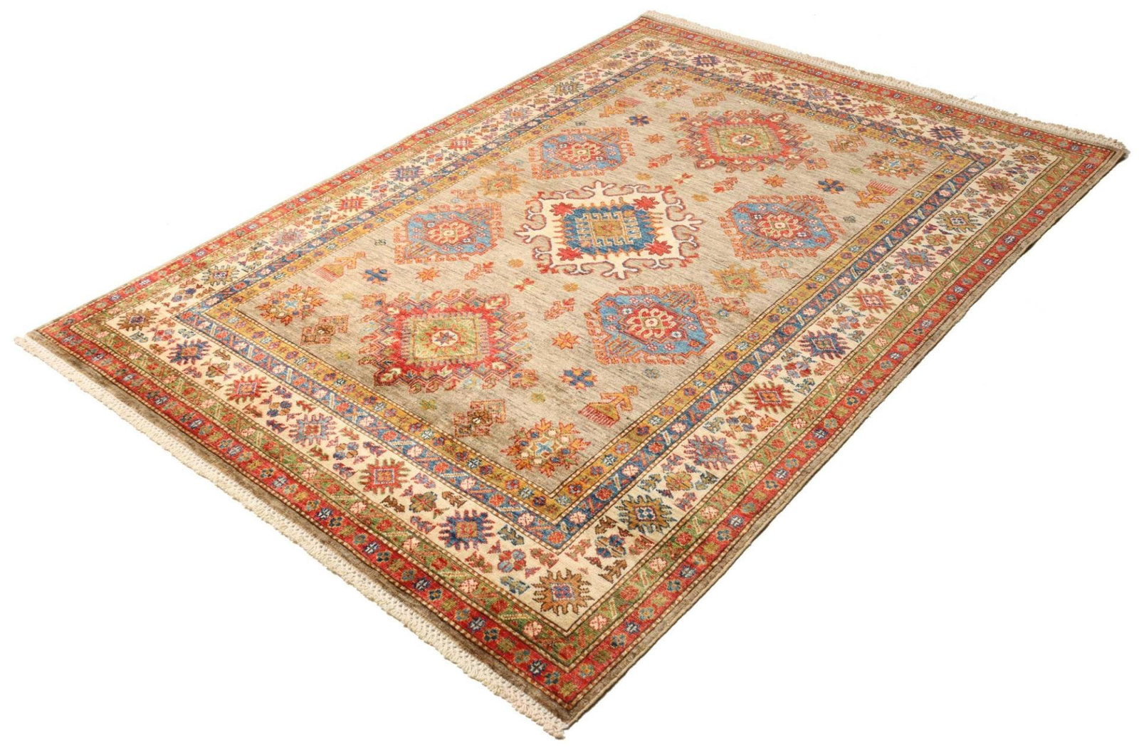 2028$Ursprünglicher Preis war: 2028$1715$Aktueller Preis ist: 1715$Kazak Teppich | Knotendichte: ca. 200.000 Knoten/m² | Material: 100% Schurwolle | Größe: 148×203 cm | Zustand: Handgeknüpft | Herkunft: Pakistan | Muster: Geometrische Figuren und Muster