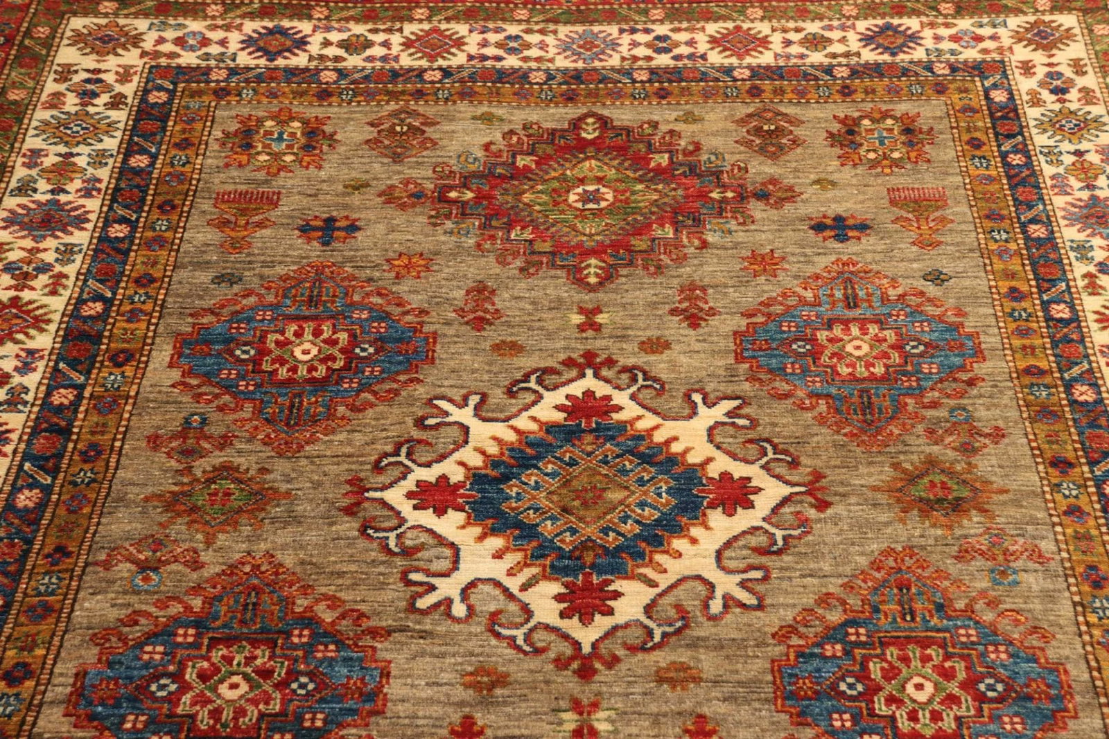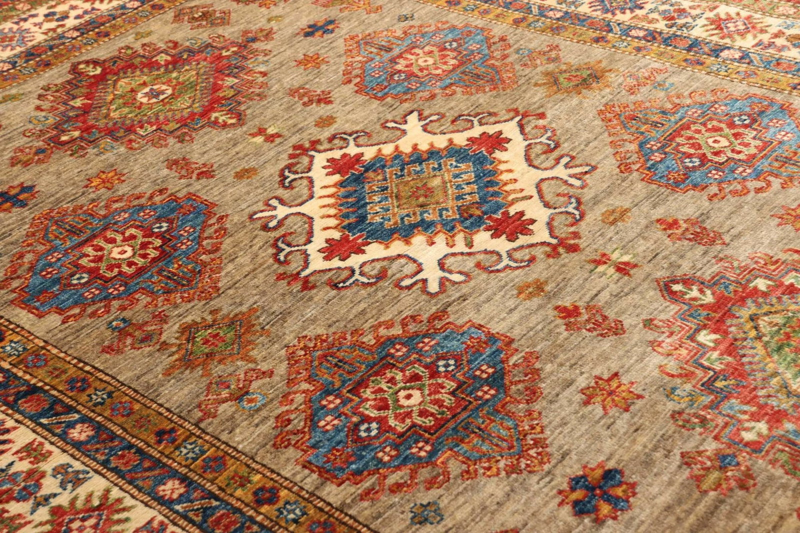 Kazak Teppich, handgeknüpft, geometrische Muster, Wolle