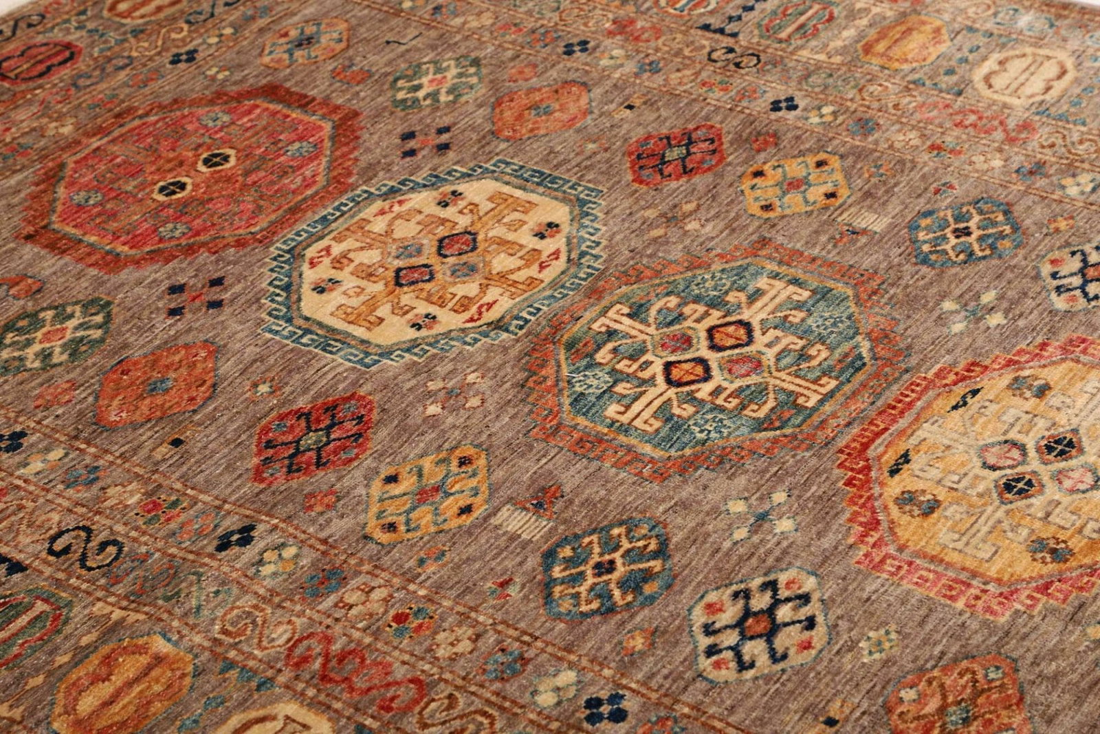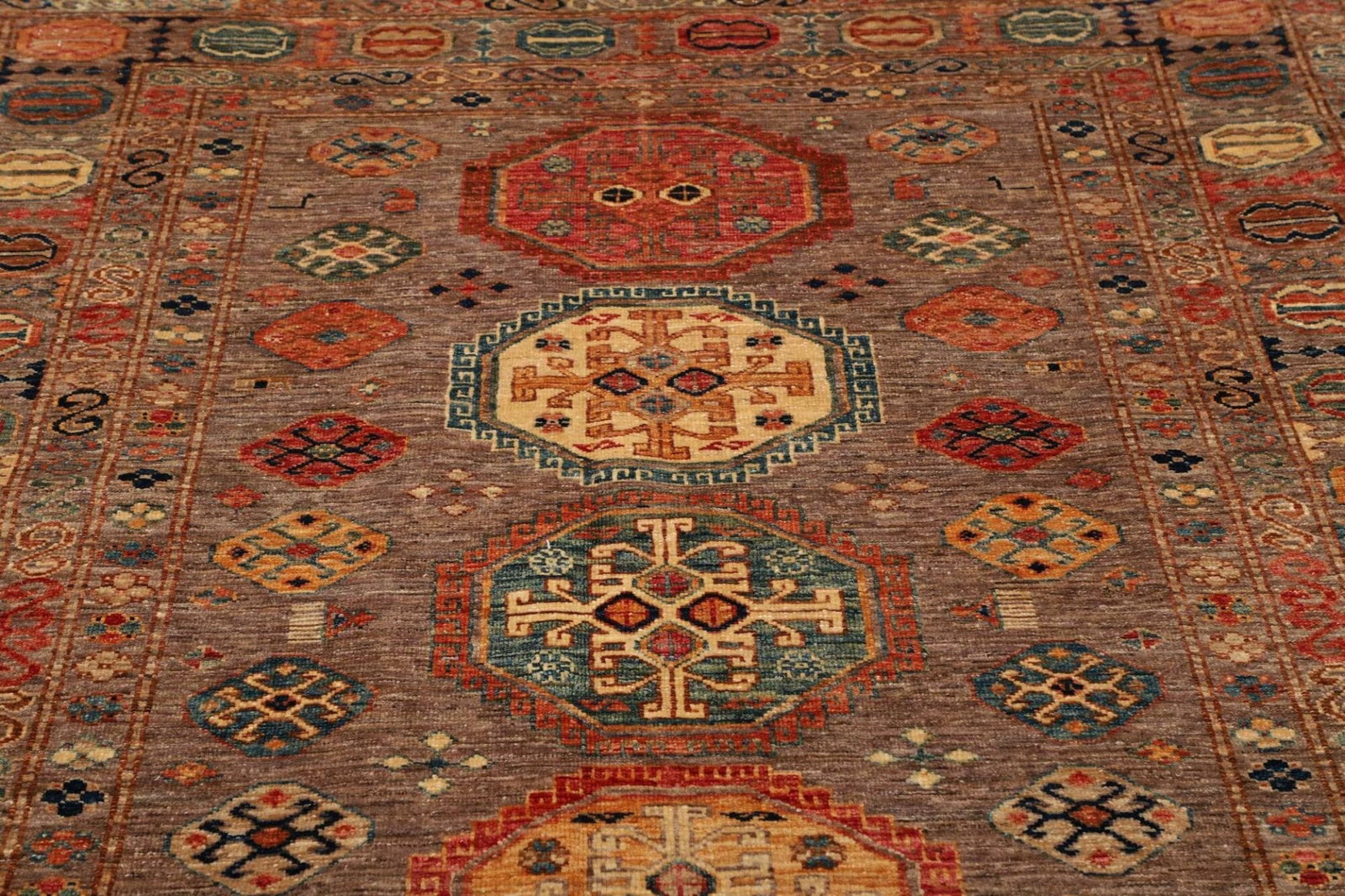 Dieser Teppich ist nicht nur eine funktionale Ergänzung für Ihr Zuhause, sondern auch ein ästhetisches Highlight, das Gespräche anregt und Gäste beeindruckt. Er ist ein Zeugnis der außergewöhnlichen Handwerkskunst und der kulturellen Vielfalt der Kaukasus-Region.