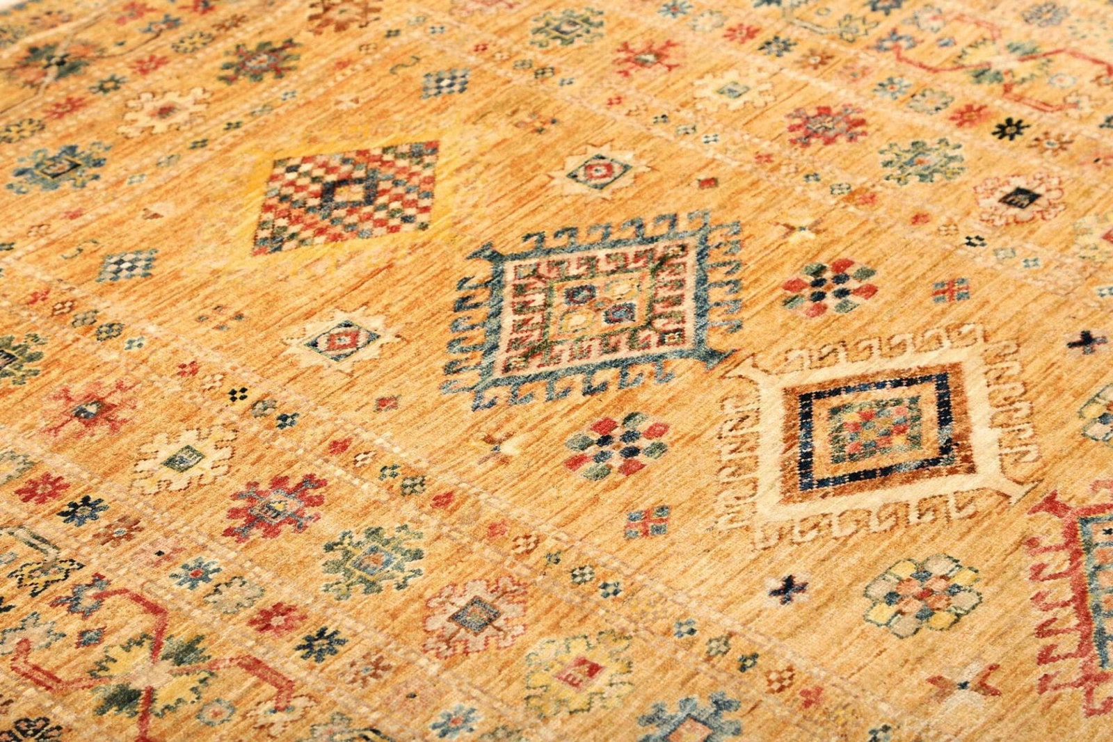 Die Teppiche aus dieser Gegend sind traditionell in lebhaften Farben wie Rot, Blau und Gelb gehalten, die mit kontrastierenden geometrischen Mustern verziert sind. Diese Muster haben ihre Wurzeln in alten Symboliken und stehen für Natur, Familie und den Glauben der Menschen. Orientteppiche sind nicht nur Einrichtungsgegenstände, sondern auch Träger einer tiefen Geschichte und Erzählungen.