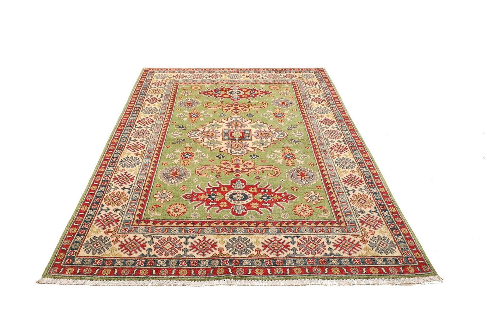 € 886Ursprünglicher Preis war: € 886€ 650Aktueller Preis ist: € 650Kazak Teppich | Knotendichte: ca. 100.000 Knoten/m² | Material: 100% Schurwolle | Größe: 151 x 205 cm | Herkunft: Pakistan | Zustand: Handgeknüpft, sehr gut erhalten | Provenienz: Kazak
