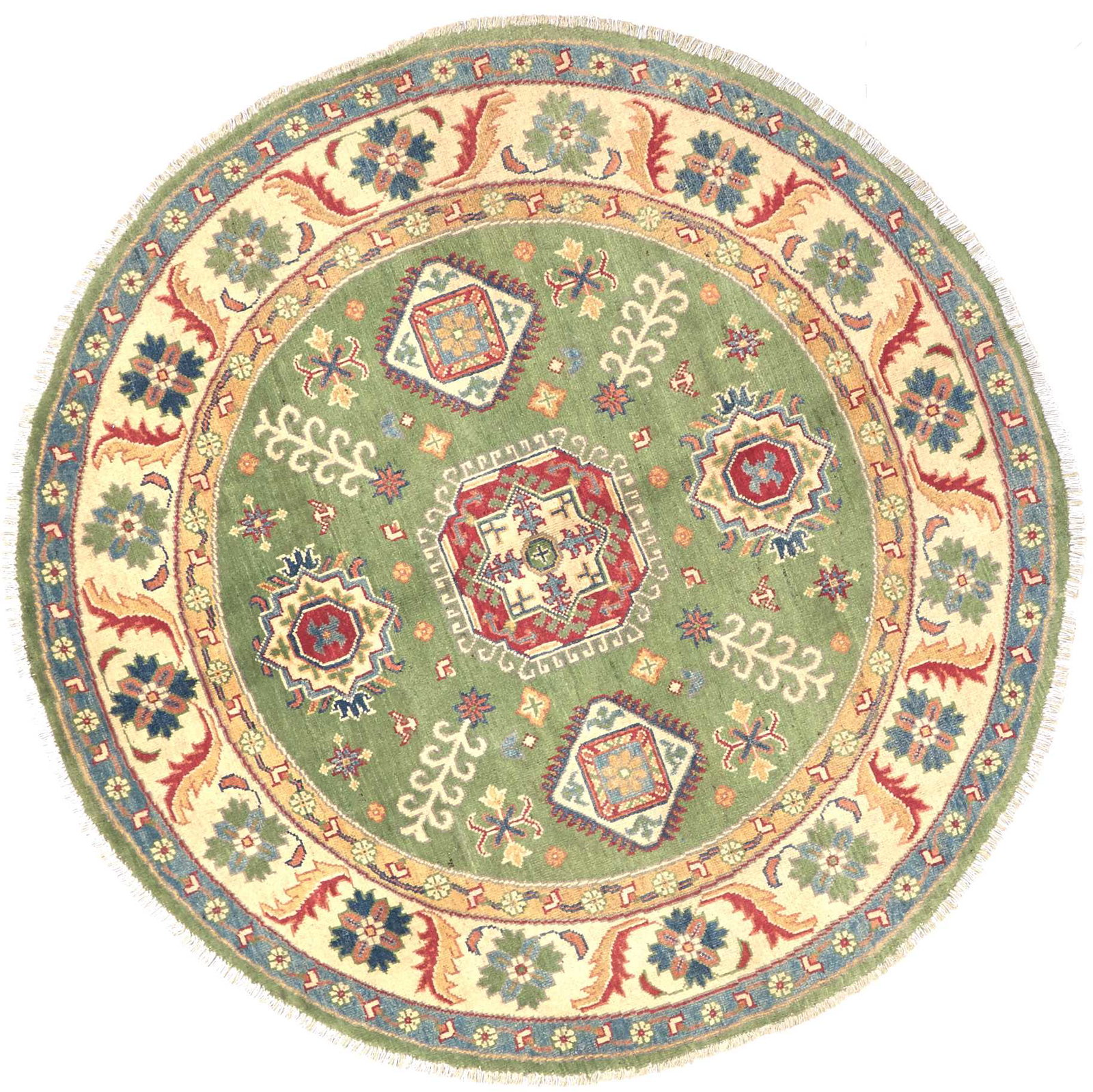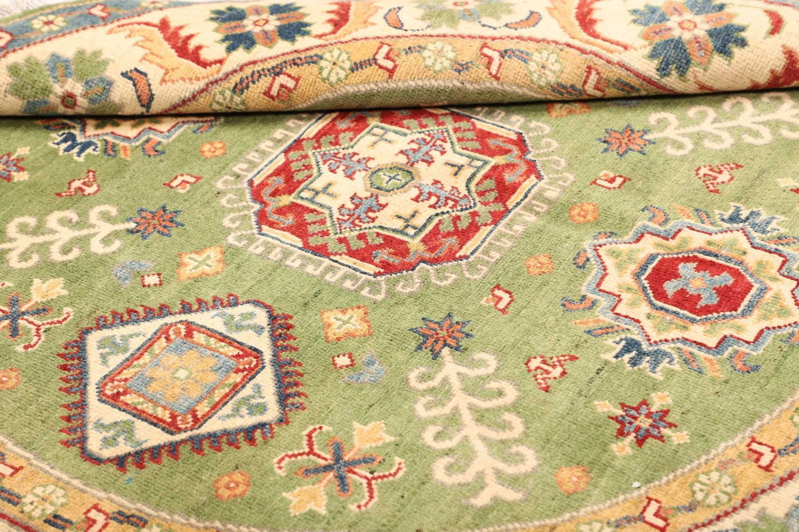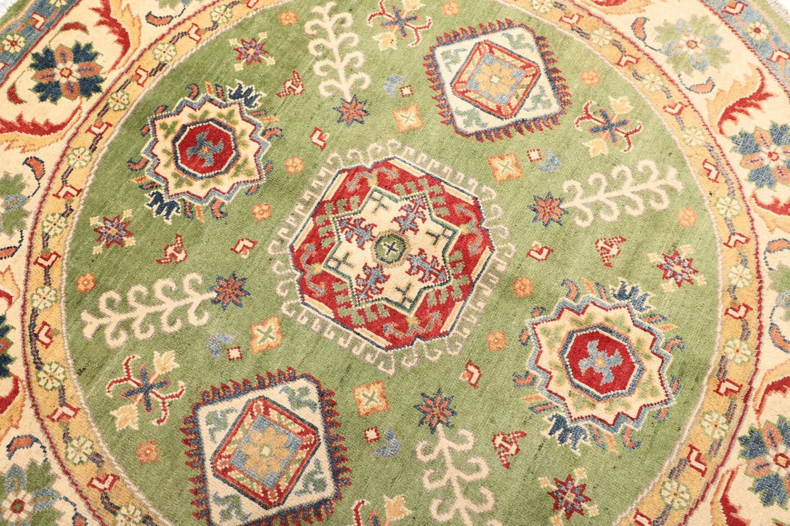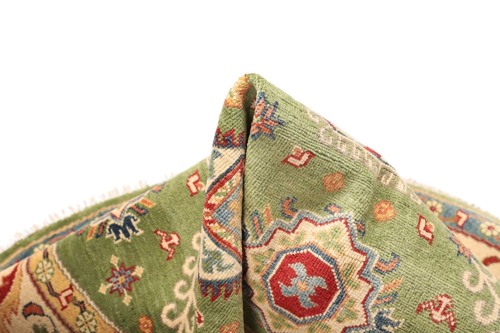 566$Ursprünglicher Preis war: 566$461$Aktueller Preis ist: 461$Kazak Teppich | Knotendichte: ca. 100.000 Knoten/m² | Material: 100% Schurwolle und 100% Baumwolle | Größe: 152 x 149 cm | Herkunft: Pakistan | Zustand: Handgeknüpft, sehr gute Qualität | Geometrisches Muster, typische Kazak Merkmale