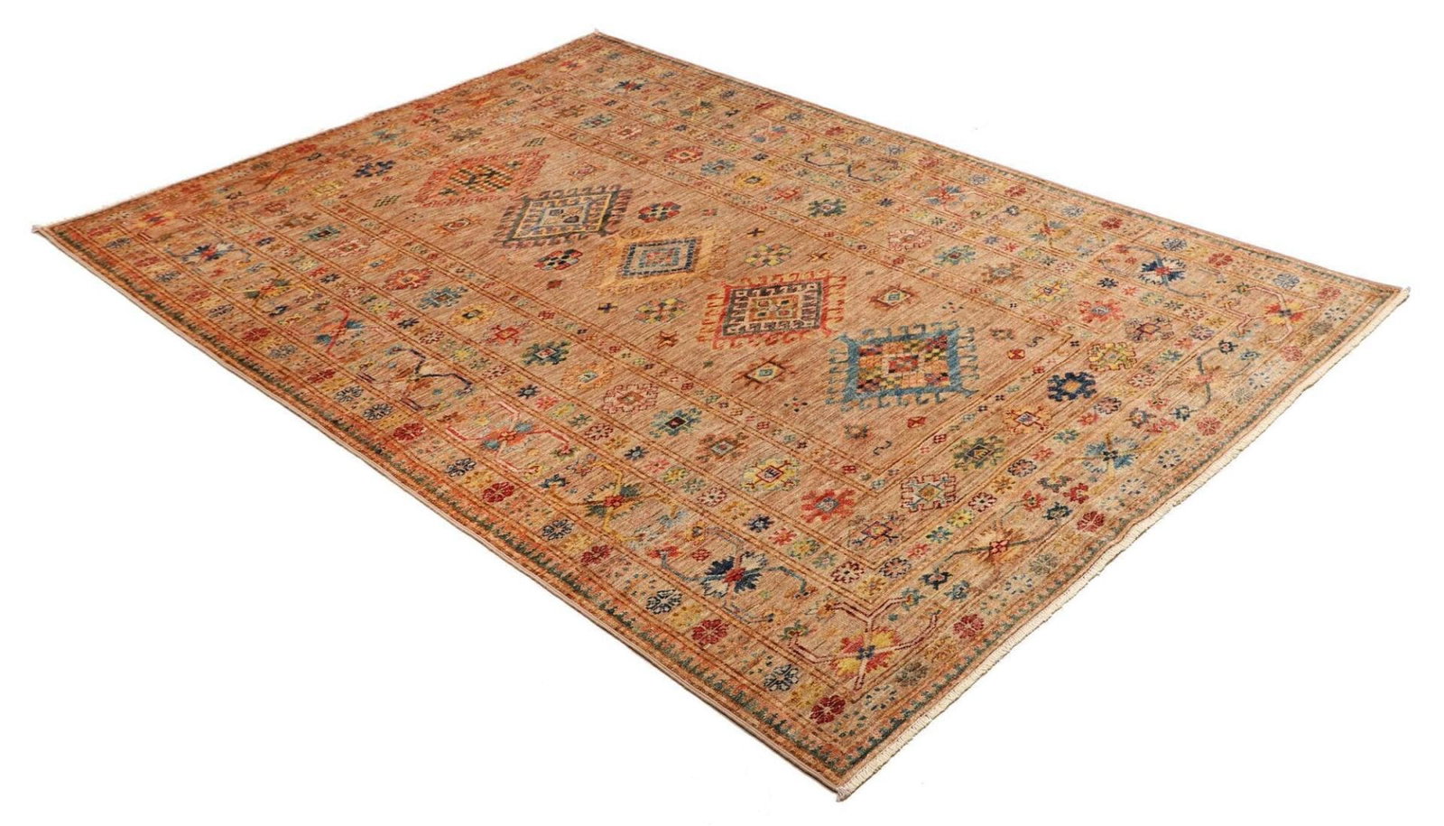 Neben seinem ästhetischen Wert bietet der Kazak Teppich auch funktionale Vorteile. Durch die Wärmeisolierung, die Wolle bietet, sorgt der Teppich für eine angenehme Fußwärme und trägt zu einem behaglichen Raumklima bei. Zudem ist er schmutzabweisend, was die Pflege und Reinigung enorm erleichtert. Ein regelmäßiges Staubsaugen ist meist ausreichend, um die Farben und die Struktur des Teppichs über viele Jahre hinweg zu erhalten.