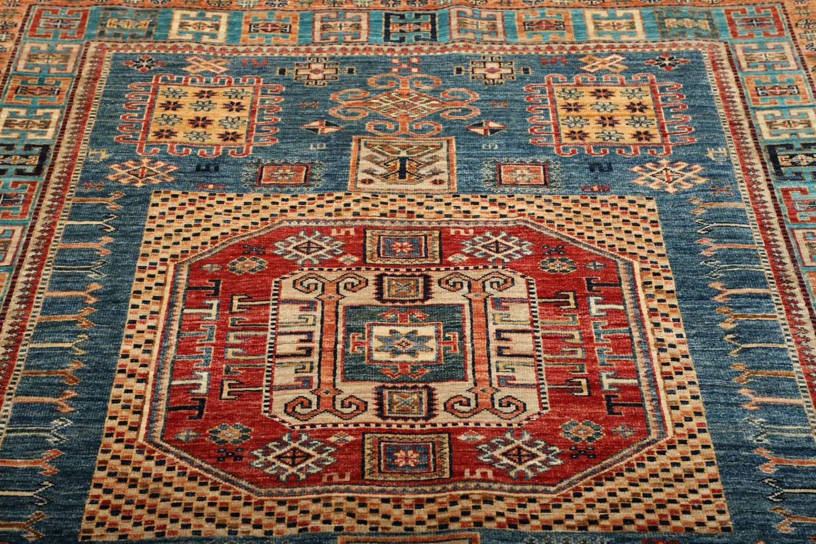 Kazak Teppich 153 x 195 cm, geometrisches Muster, handgeknüpft