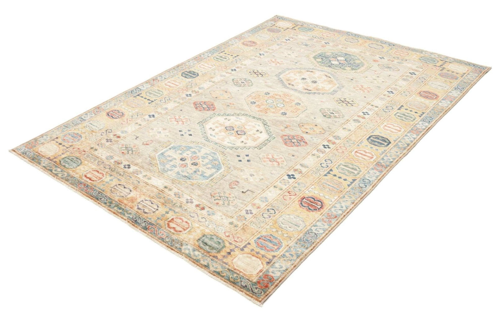 Die Tradition handgeknüpfter Teppiche in der Region Kaukasus, aus der der Kazak Teppich stammt, reicht bis ins antike Persien zurück. Die Kasaken sind für ihre farbenfrohen und lebendigen Designs bekannt, die oft von der Natur und den täglichen Lebensweisen inspiriert sind. Die Teppiche aus dieser Region zeichnen sich durch ihre Widerstandsfähigkeit und die Verwendung traditioneller Naturfarben aus, die auch nach vielen Jahren der Nutzung noch ihre Strahlkraft behalten.