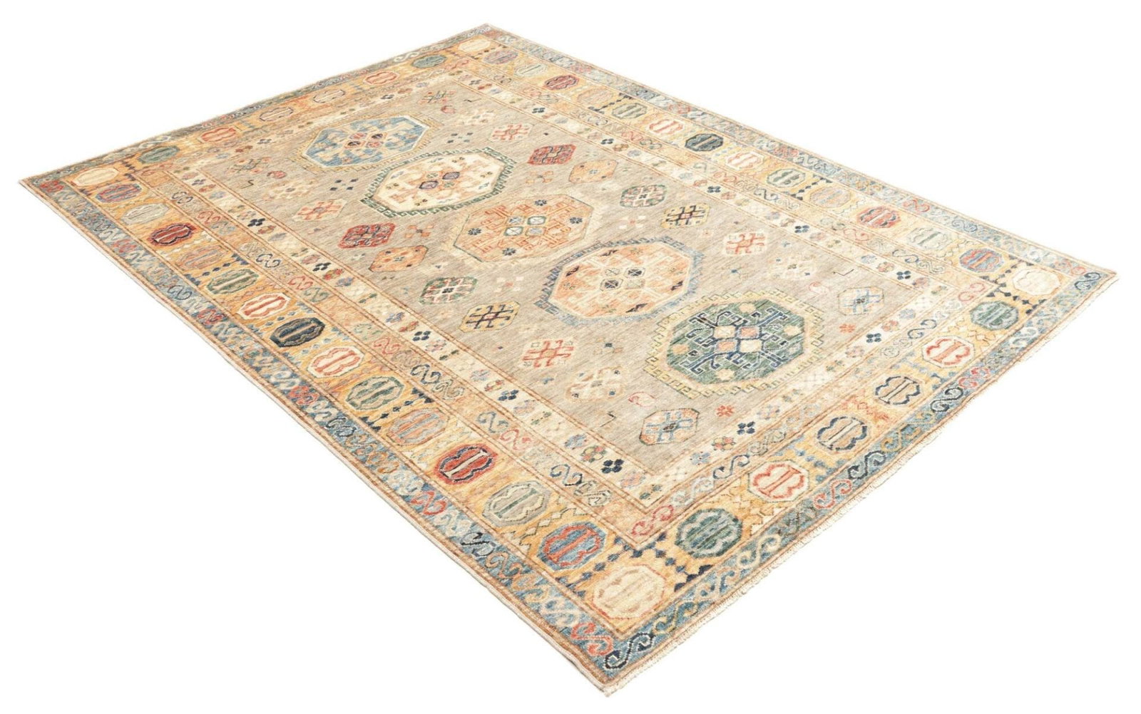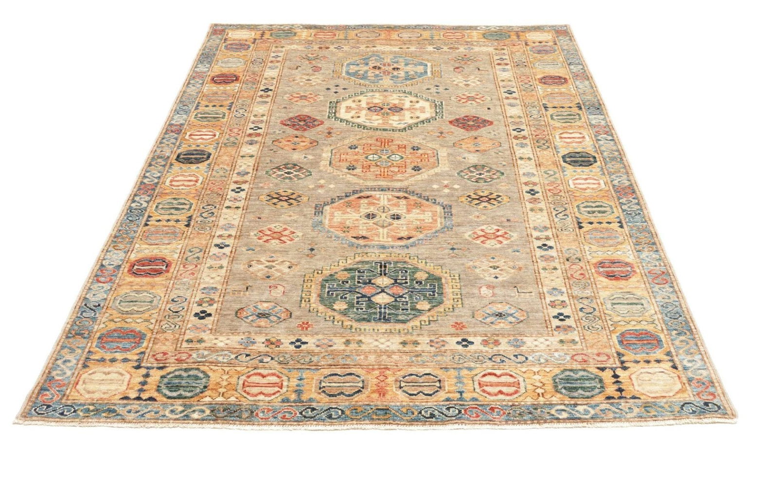 2728$Ursprünglicher Preis war: 2728$1995$Aktueller Preis ist: 1995$Kazak Teppich | Knotendichte: ca. 200.000 Knoten/m² | Material: 100% Schurwolle | Größe: 154 x 209 cm | Herkunft: Pakistan | Zustand: Handgeknüpft | Geometrische Muster und Figuren