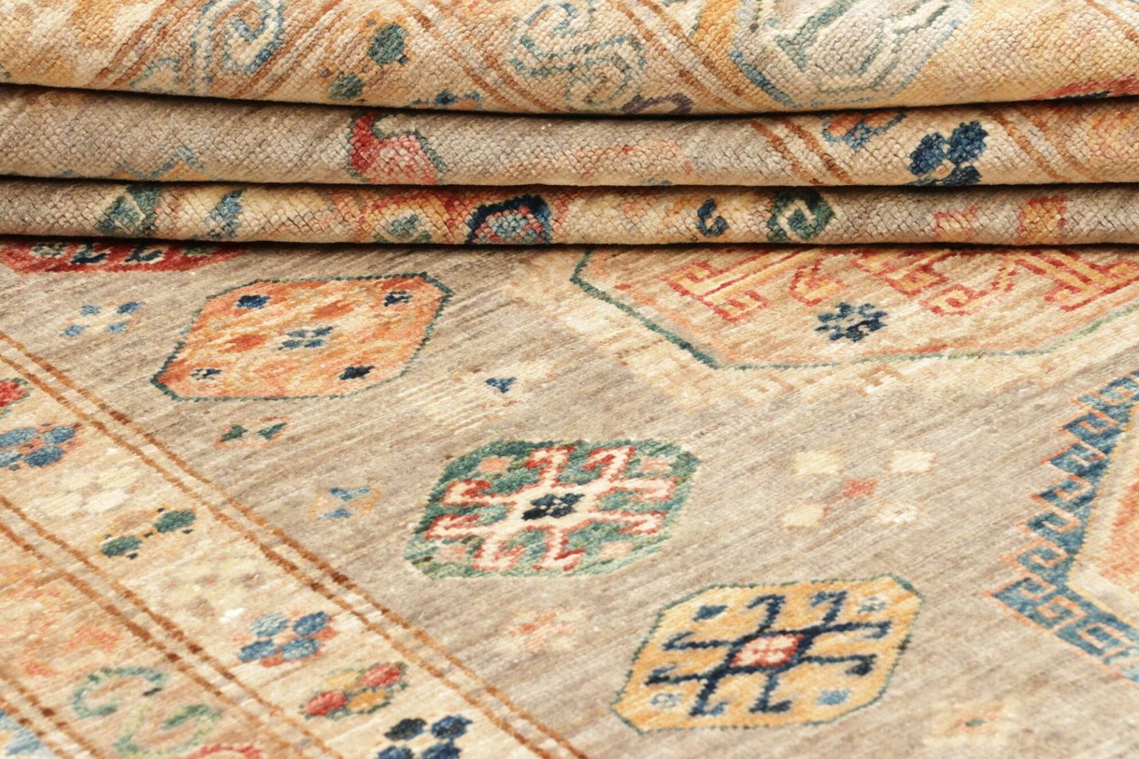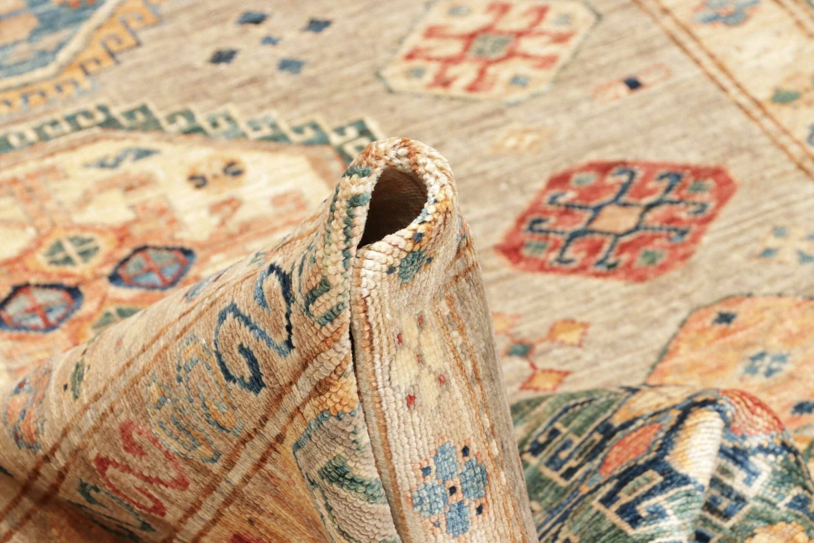 Der Kazak Teppich ist aus hochwertigen Materialien gefertigt, die sowohl Langlebigkeit als auch Komfort bieten. Die verwendete Wolle ist bekannt für ihre Strapazierfähigkeit und ihre sanfte Haptik. Jeder Teppich ist handgeknüpft, was bedeutet, dass er in einer mühsamen und zeitaufwändigen Technik von erfahrenen Kunsthandwerkern hergestellt wird. Diese Technik sorgt für eine hohe Knotendichte, die den Teppich robust und langlebig macht.