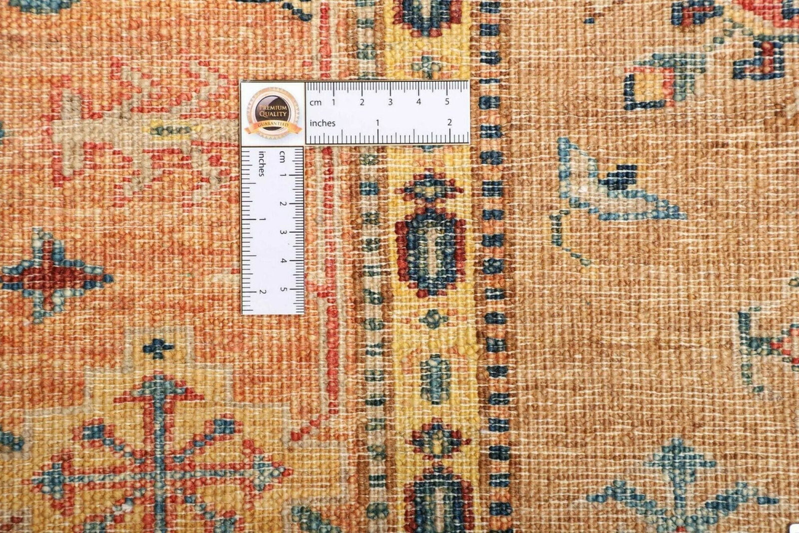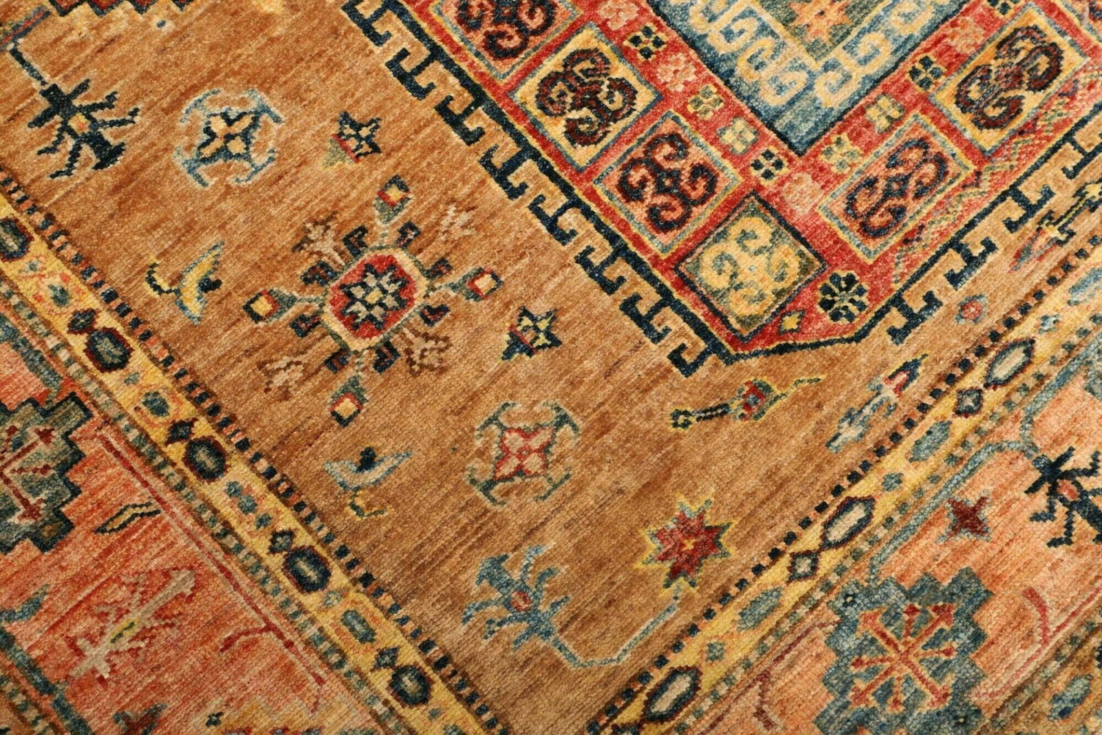 Der Kazak Teppich wird aus hochwertigen Materialien hergestellt, die nicht nur für ein ansprechendes Aussehen sorgen, sondern auch für eine hohe Langlebigkeit. Die Verwendung von reiner Schurwolle macht den Teppich besonders strapazierfähig und widerstandsfähig gegen Abnutzung. Durch das handgeknüpfte Verfahren wird jeder Teppich zu einem individuellen Kunstwerk – jedes Knot ist von Hand gefertigt, was die Exklusivität und Qualität des Teppichs unterstreicht. Die Knotendichte ist ein entscheidender Faktor, der die Feinheit und Detailgenauigkeit des Musters bestimmt. Bei diesem Teppich handelt es sich um ein Meisterwerk, bei dem die Knotendichte in optimalem Verhältnis zur Größe steht und eine dichte, kompakte Struktur ergibt.