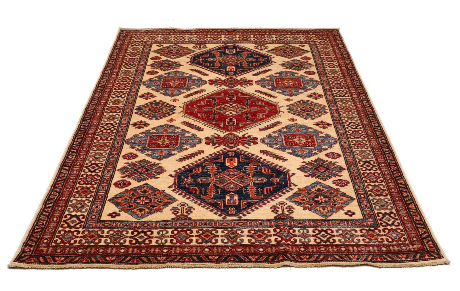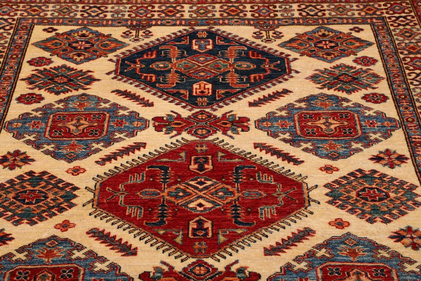 Kazak Teppich 158 x 202cm, geometrische Muster, handgeknüpft