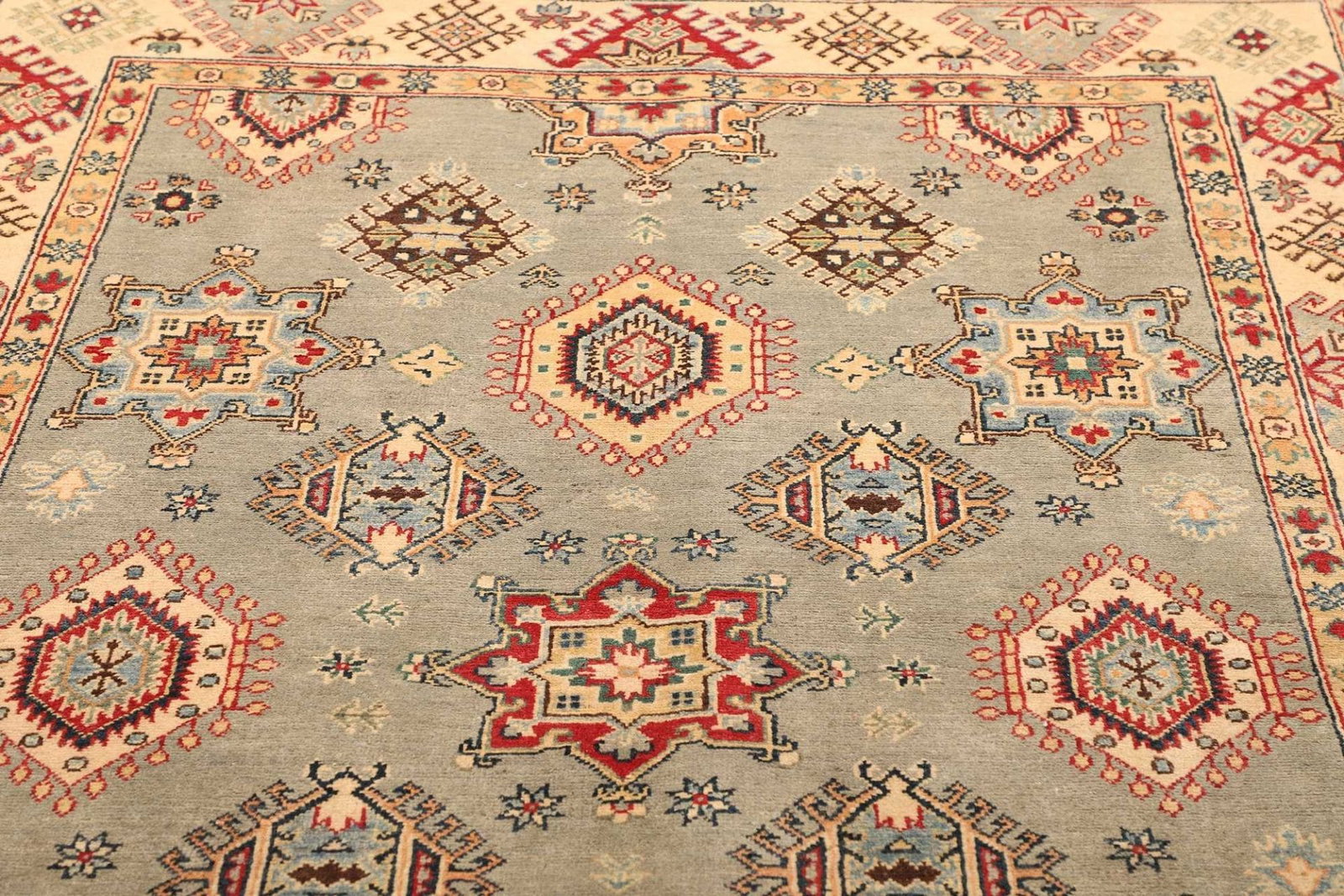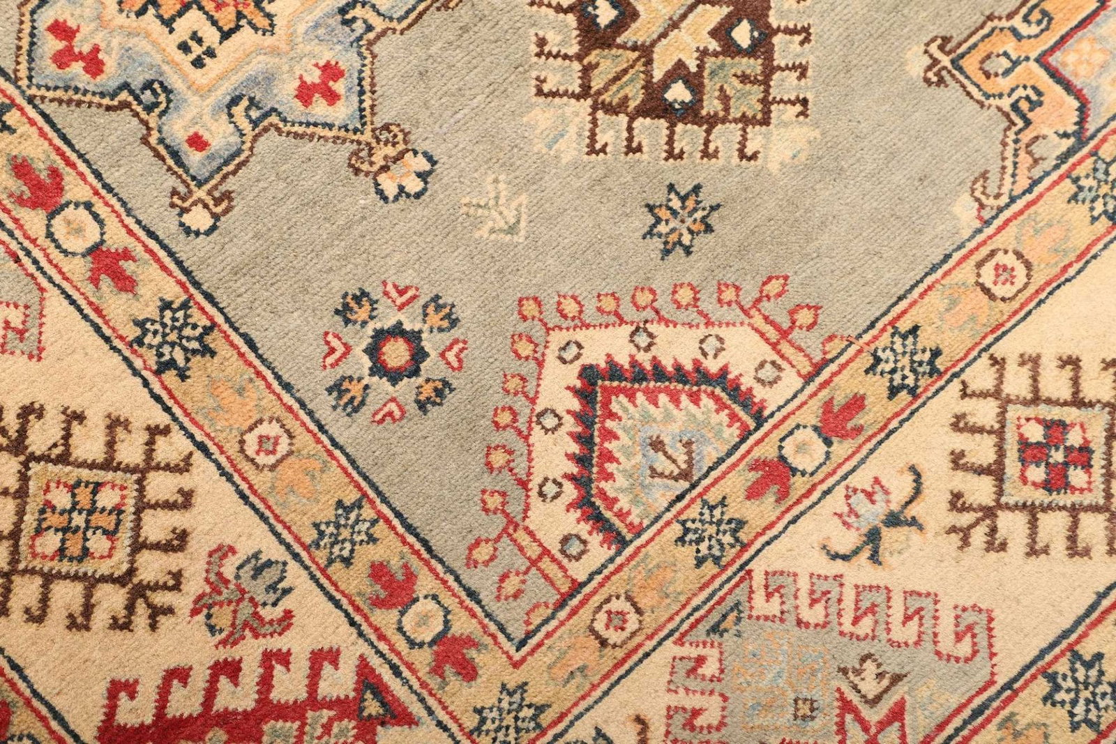 Insgesamt ist der handgeknüpfte Kazak Teppich mit geometrischem Muster eine stilvolle und langlebige Ergänzung für Ihr Zuhause. Seine Kombination aus traditioneller Handwerkskunst und modernem Design macht ihn zu einem wertvollen Investitionsstück. Mit seiner besonderen Herkunft, dem hochwertigen Material und dem einzigartigen Design ist dieser Teppich nicht nur ein dekoratives Element, sondern auch ein Stück Geschichte, das die Atmosphäre Ihres Raumes bereichert.