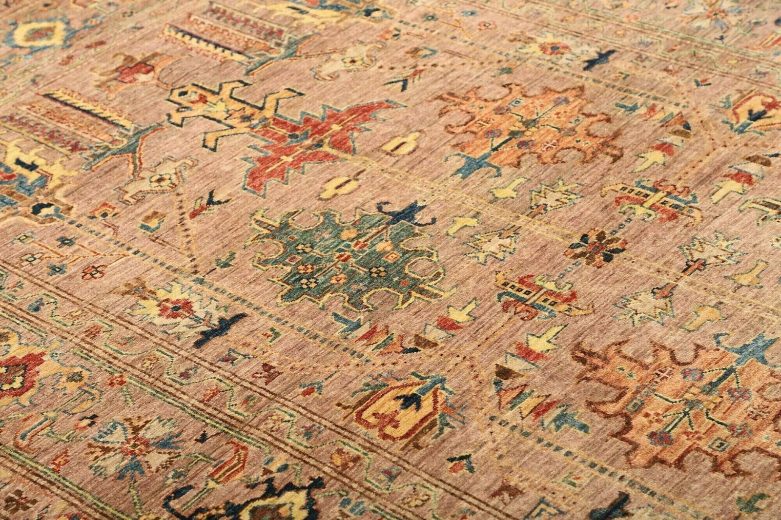 Das geometrische Muster dieses Kazak Teppichs ist ein wahres Meisterwerk. Typische Designs können Sterne, Rhomben und andere geometrische Formen umfassen, die in lebendigen Farben angeordnet sind. Die Verwendung von kräftigen Farbtönen wie Rot, Blau und Gelb verleiht dem Teppich einen dynamischen Charakter, der Ihre Wohnräume aufwertet. Diese Muster haben oft symbolische Bedeutungen und können Geschichten oder Glaubensvorstellungen der Teppichknüpfer reflektieren. Jedes Design hat einen kulturellen Hintergrund und eine tiefere Bedeutung, die zum Erbe der Region gehört.