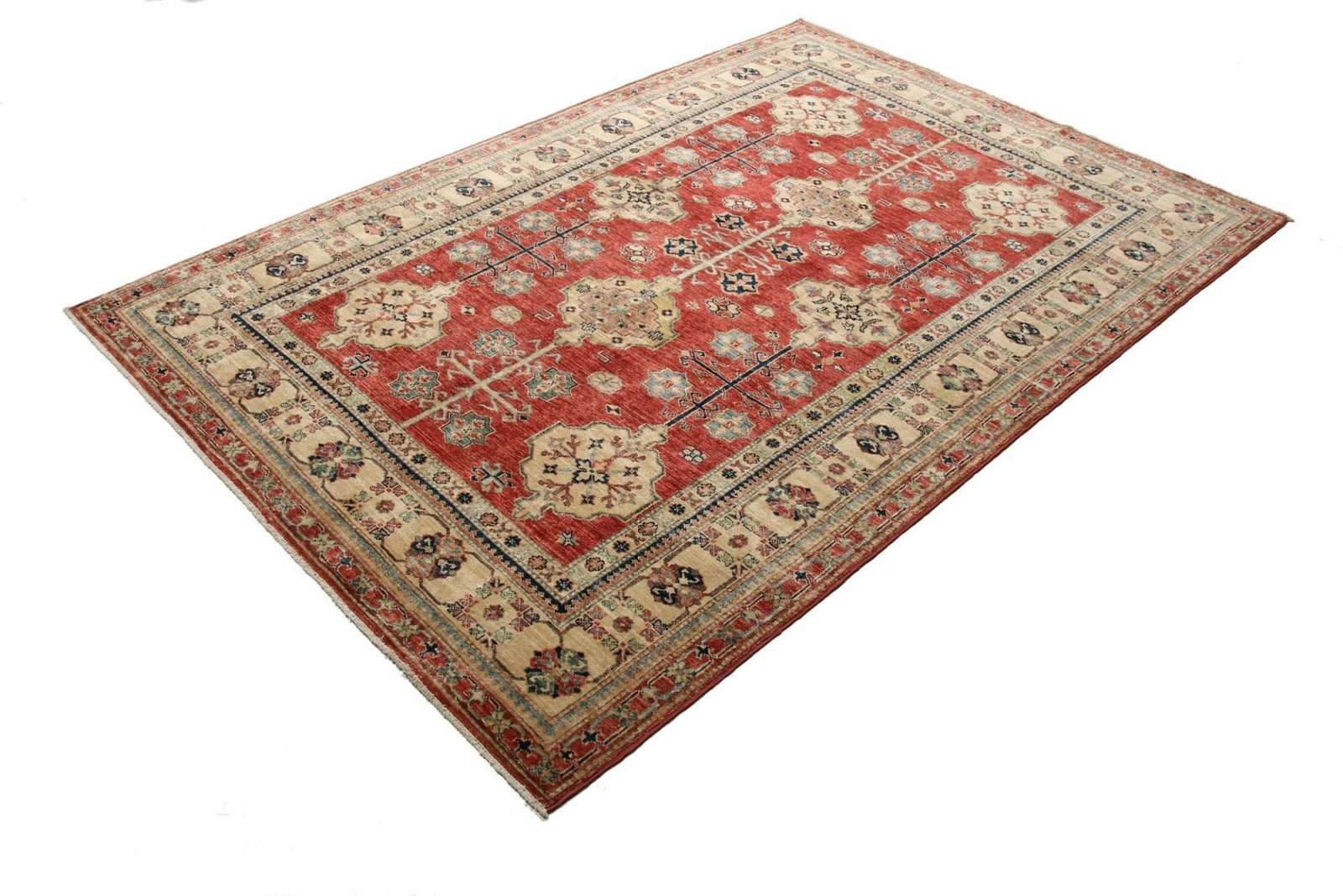 3428$Ursprünglicher Preis war: 3428$2531$Aktueller Preis ist: 2531$Kazak Teppich | Knotendichte: ca. 200.000 Knoten/m² | Flor: 100% Schurwolle | Kette: 100% Baumwolle | Größe: 169 x 242 cm | Handgeknüpfte Qualität | Herkunft: Pakistan | Provenienz: Kazak | Zustand: Sehr gut