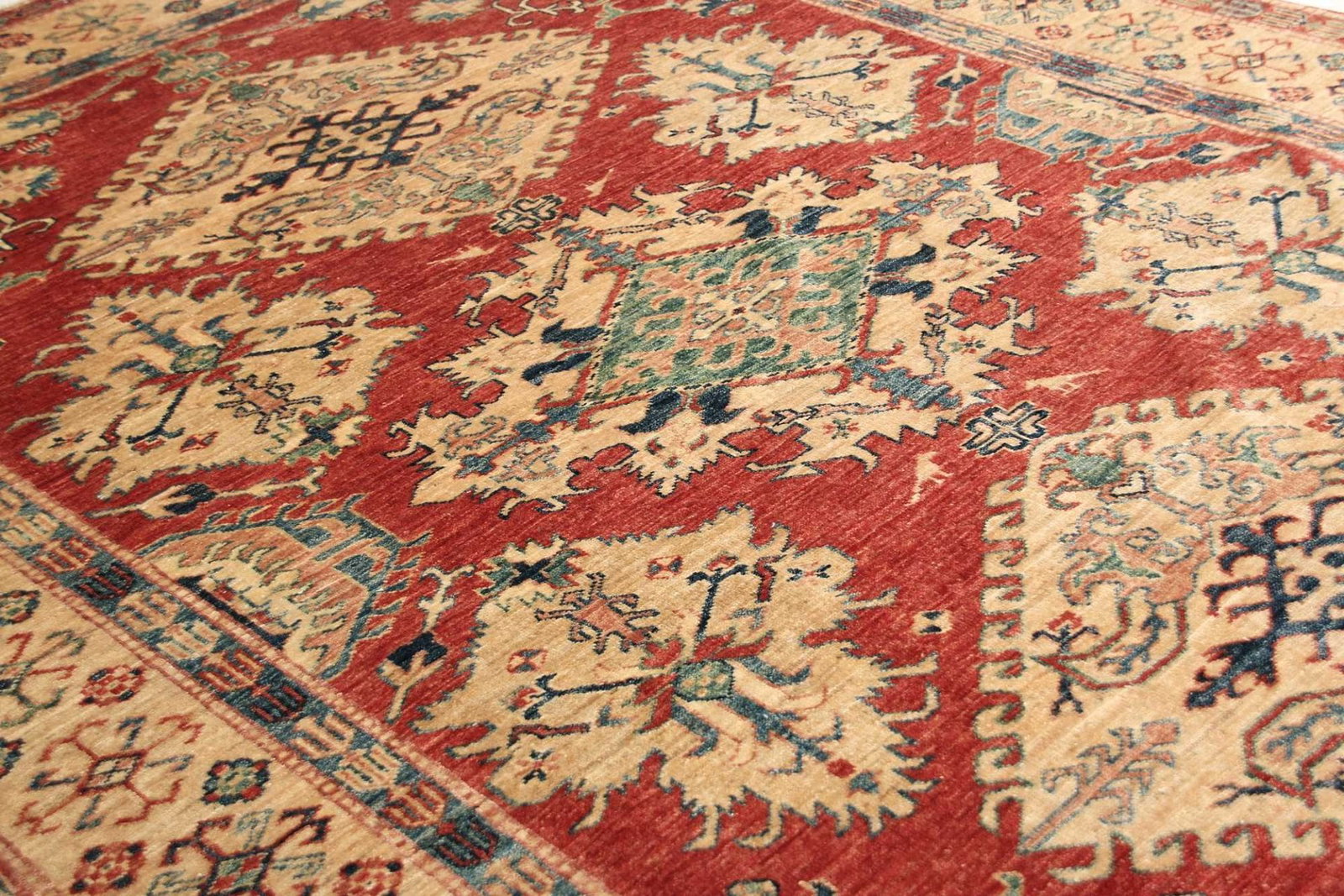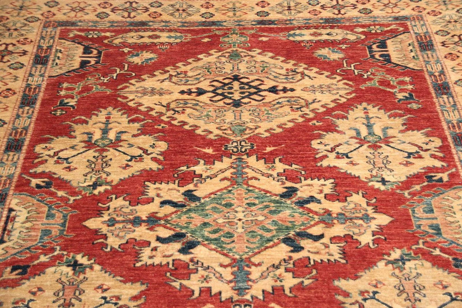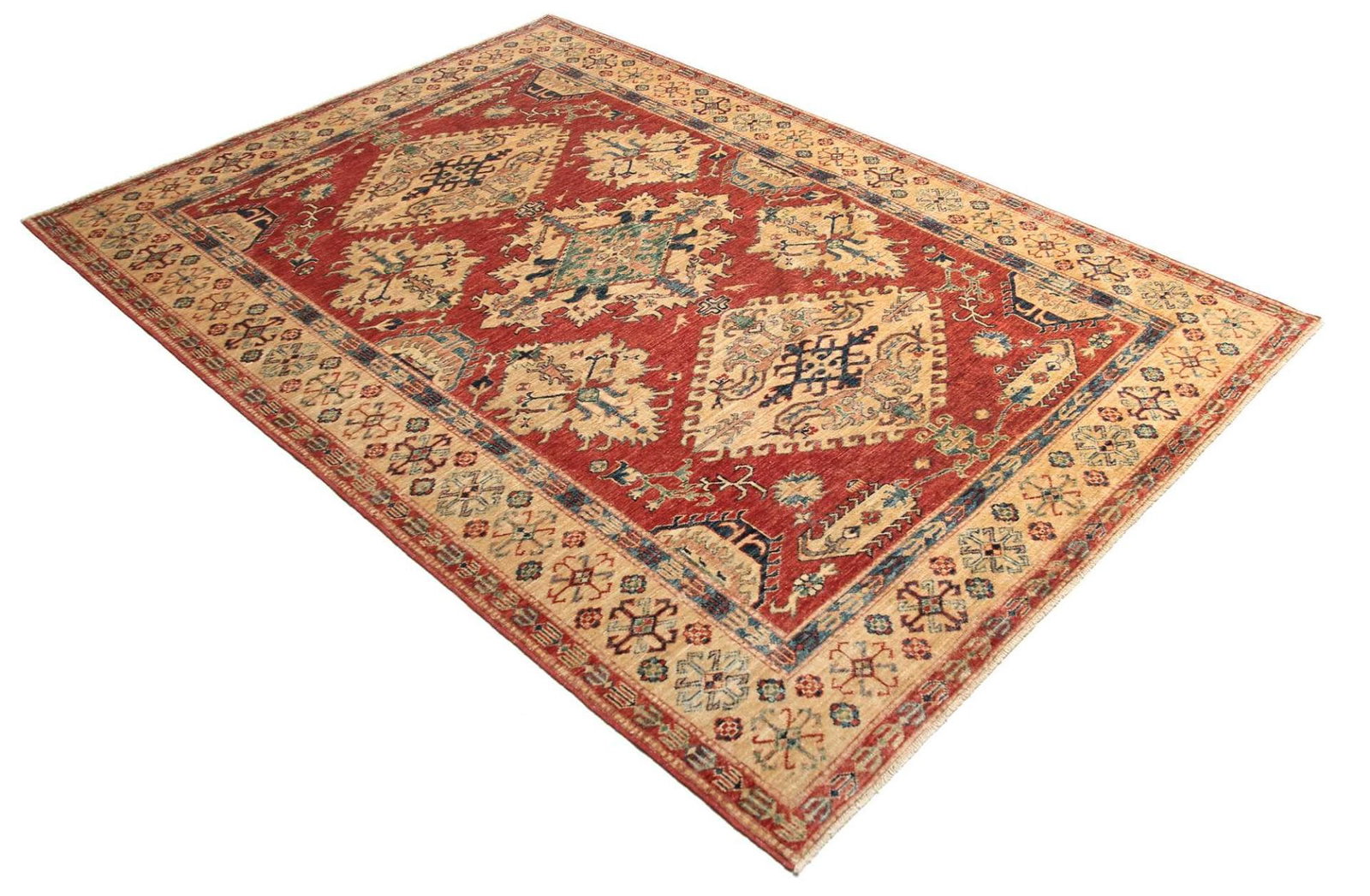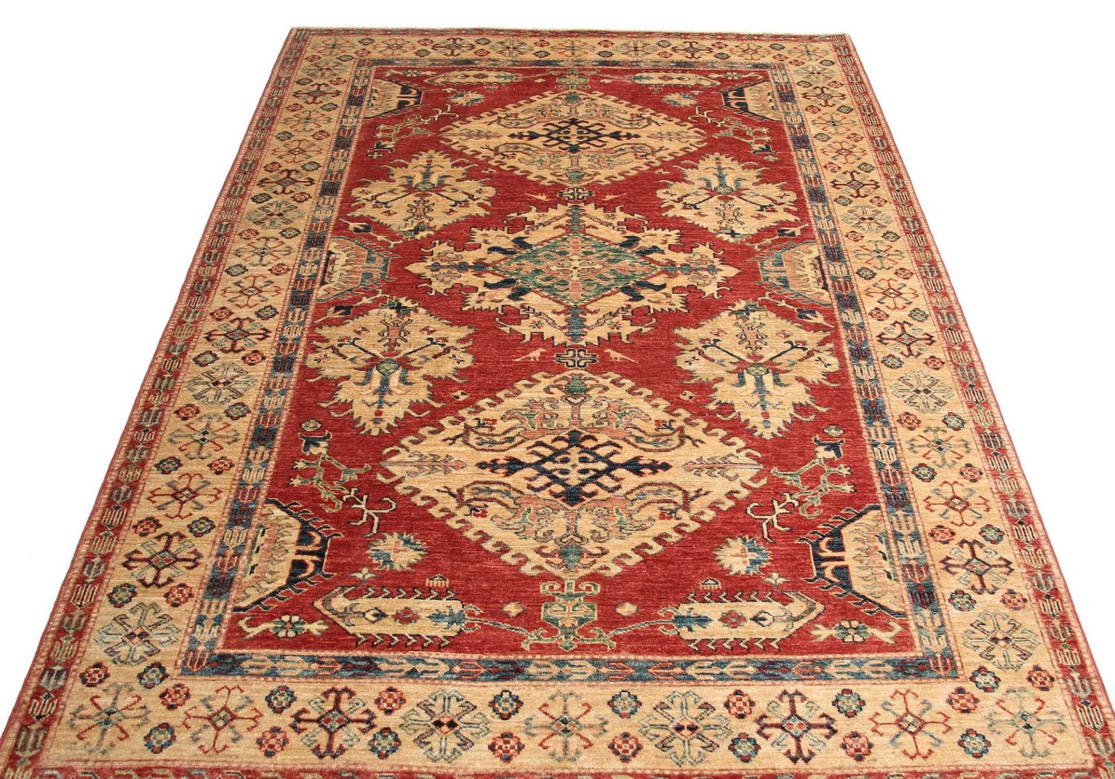 Kazak Teppich | Knotendichte: ca. 200.000 Knoten/m² | Material: 100% Schurwolle | Größe: 173 x 248 cm | Herkunft: Pakistan | Zustand: Handgeknüpft | Geometrische Muster