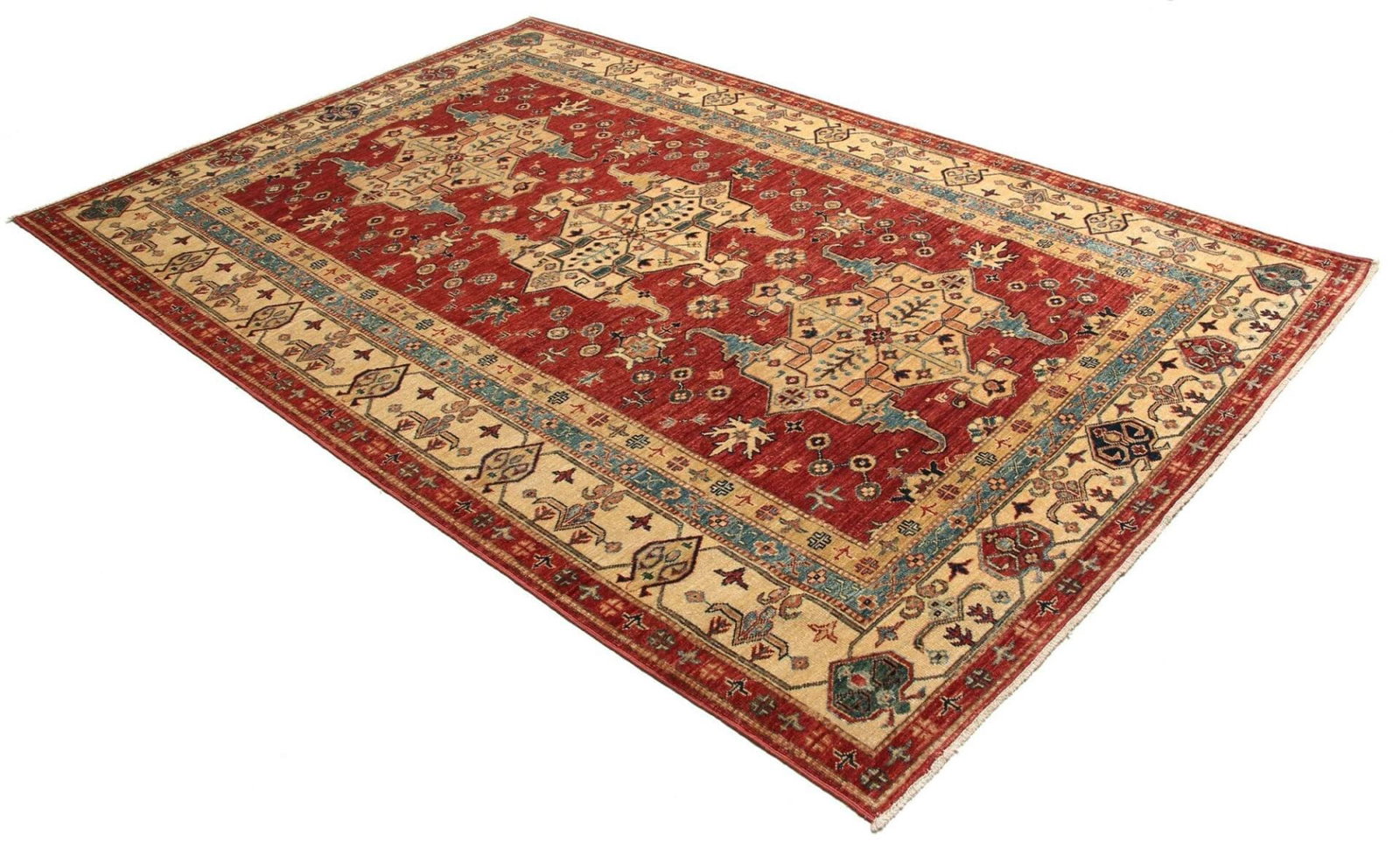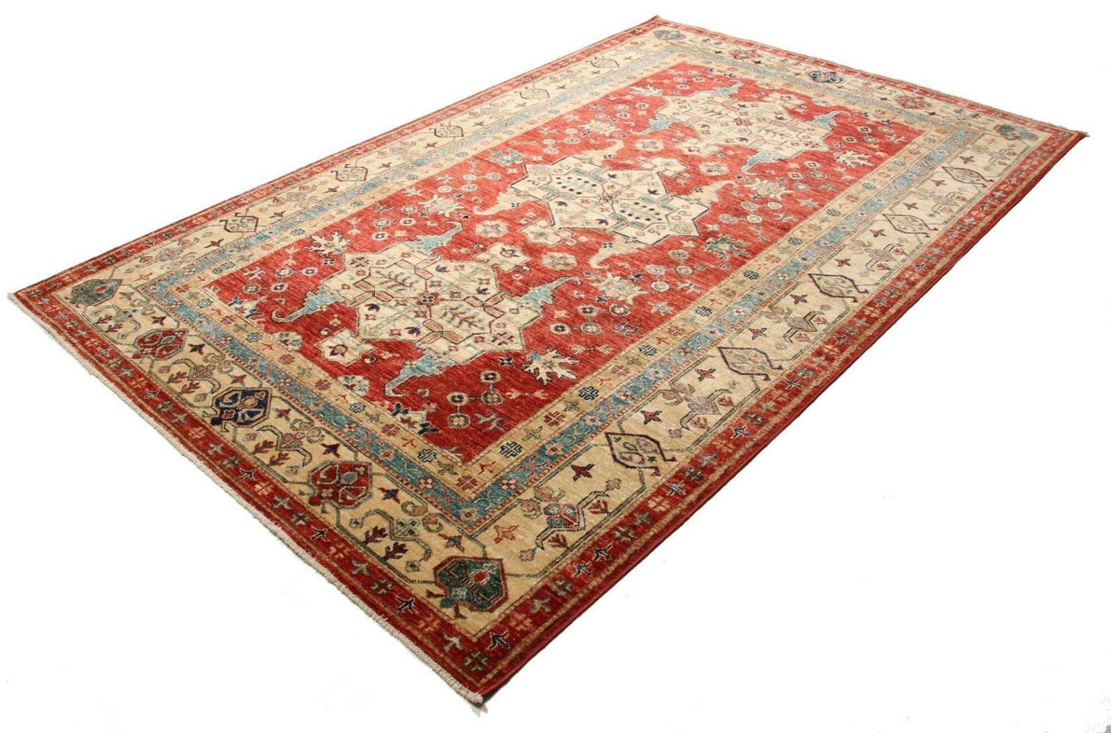Kazak Teppich | Knotendichte: ca. 200.000 Knoten/m² | Material: 100% Schurwolle und 100% Baumwolle | Größe: 173 x 264 cm | Herkunft: Pakistan | Zustand: Handgeknüpfte Qualität | Geometrische Muster und Figuren