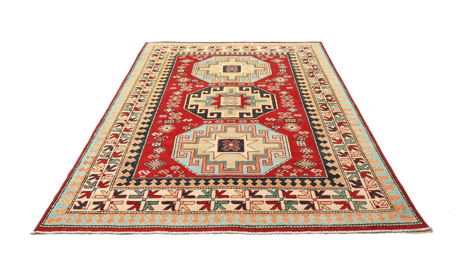 1150$Ursprünglicher Preis war: 1150$974$Aktueller Preis ist: 974$Kazak Teppich | Knotendichte: ca. 100.000 Knoten/m² | Material: 100% Schurwolle (Flor), 100% Baumwolle (Kette) | Größe: 174 x 230 cm | Handgeknüpfte Qualität | Herkunft: Pakistan | Geometrische Muster | Höhe: ca. 5-7 mm | Angenehme Haptik und schalldämpfend