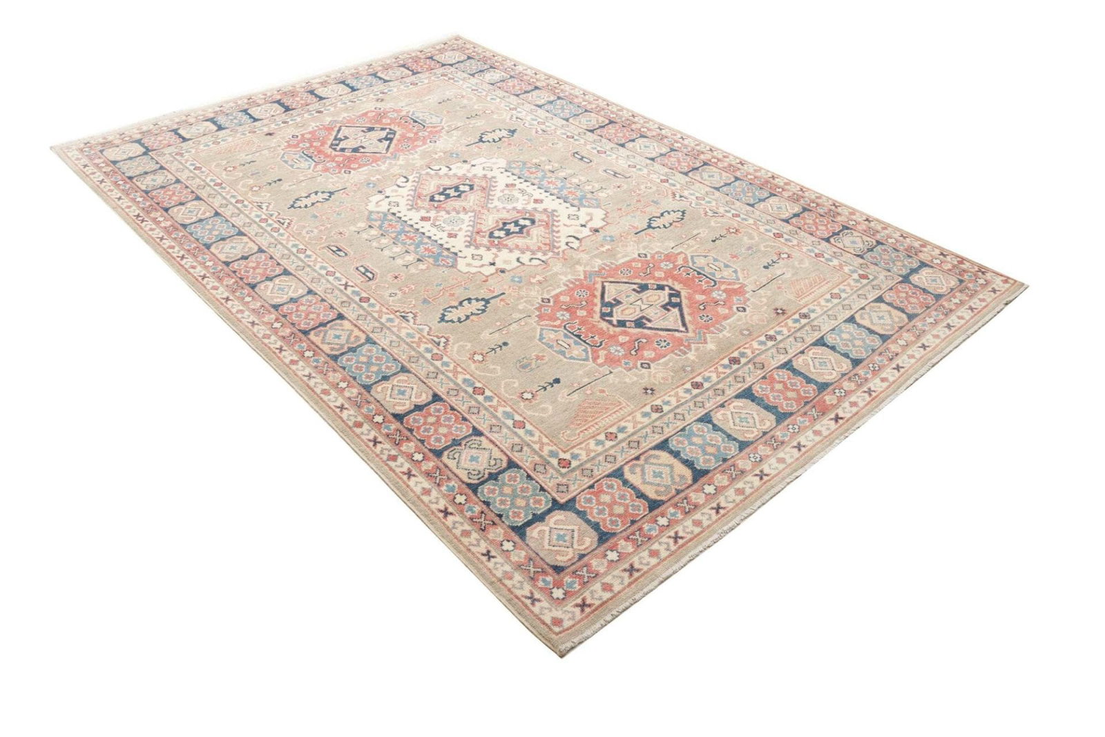 Kazak Teppich | Herkunft: Pakistan | Knotendichte: ca. 100.000 Knoten/m² | Größe: 177 x 246 cm | Flor: 100% Schurwolle | Kette: 100% Baumwolle | Handgeknüpfte Qualität | Höhe: ca. 7-10 mm | Geometrische Muster und Figuren