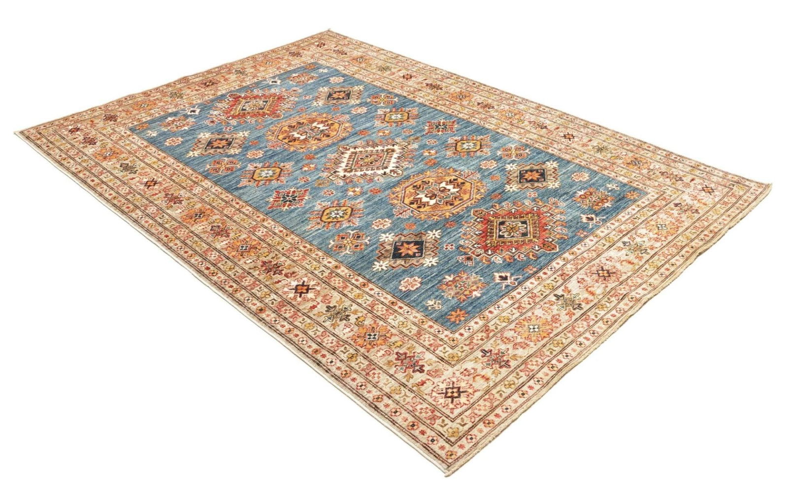 3008$Ursprünglicher Preis war: 3008$2359$Aktueller Preis ist: 2359$Kazak Teppich | Knotendichte: ca. 200.000 Knoten/m² | Material: 100% Schurwolle | Größe: 177 x 248 cm | In sehr gutem Zustand | Herkunft: Pakistan | Handgeknüpfte Qualität | Geometrische Muster und Figuren