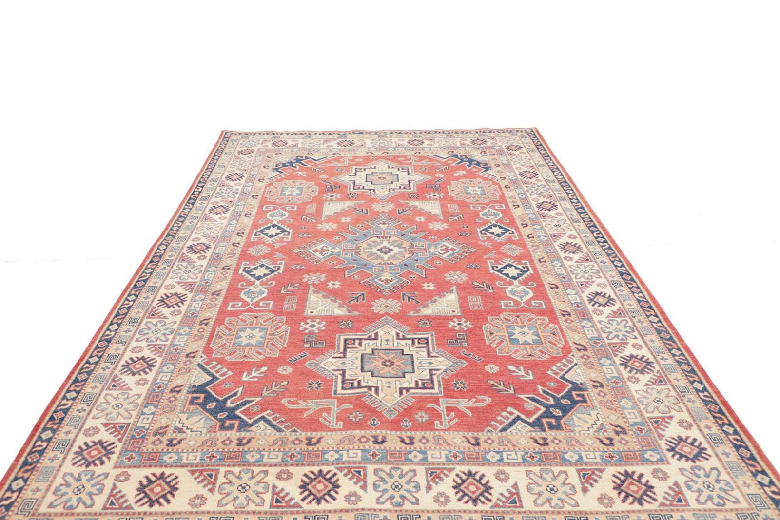 Kazak Teppich | Knotendichte: ca. 100.000 Knoten/m² | Material: 100% Schurwolle | Größe: 194 x 290 cm | Herkunft: Pakistan | Zustand: Handgeknüpfte Qualität | Geometrische Muster und Figuren