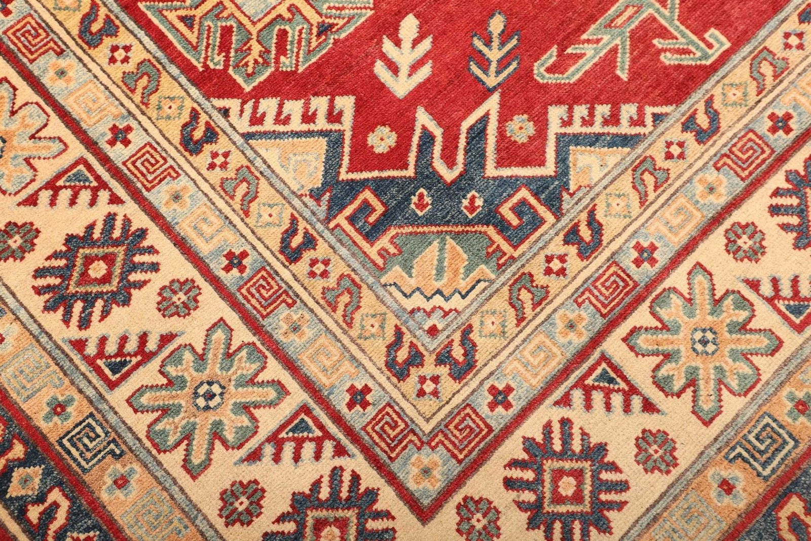 Die Qualität der verwendeten Wolle in Kombination mit der handgeknüpften Technik machen diesen Kazak Teppich zu einem langlebigen Begleiter in Ihrem Zuhause.