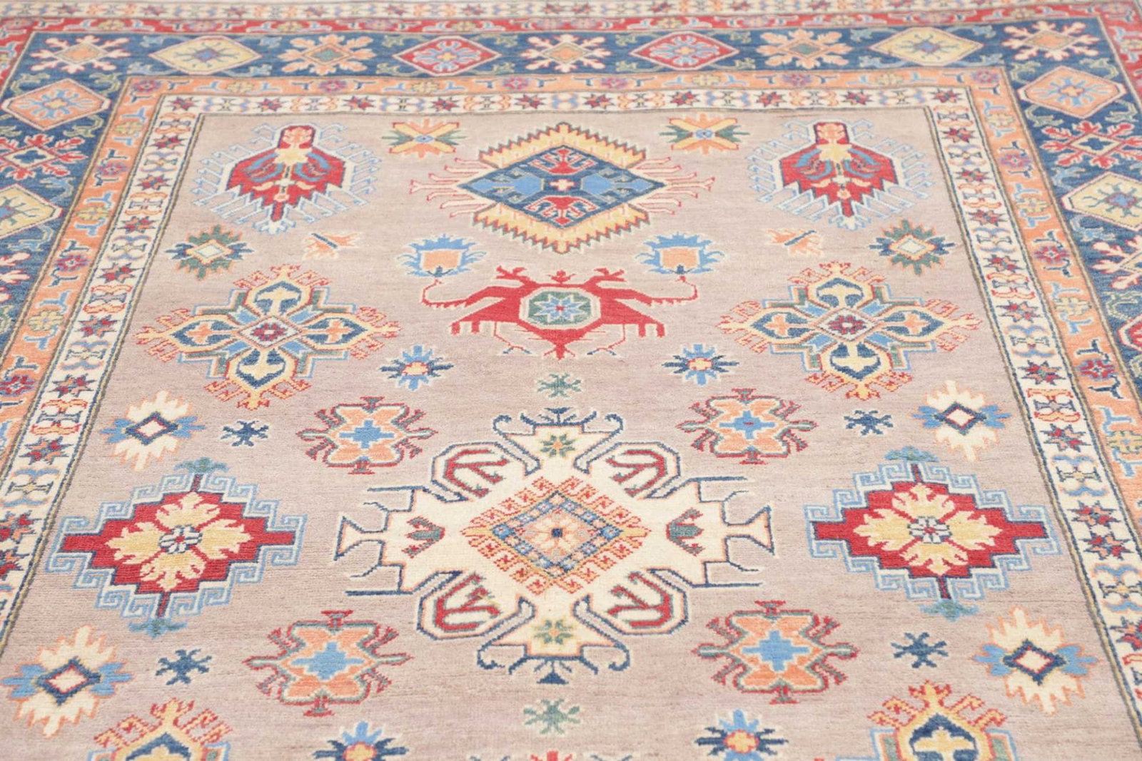 Kazak Teppich | Knotendichte: ca. 100.000 Knoten/m² | Flor: 100% Schurwolle | Kette: 100% Baumwolle | Größe: 203 x 301 cm | Herkunft: Pakistan | Zustand: Handgeknüpft und hochwertig