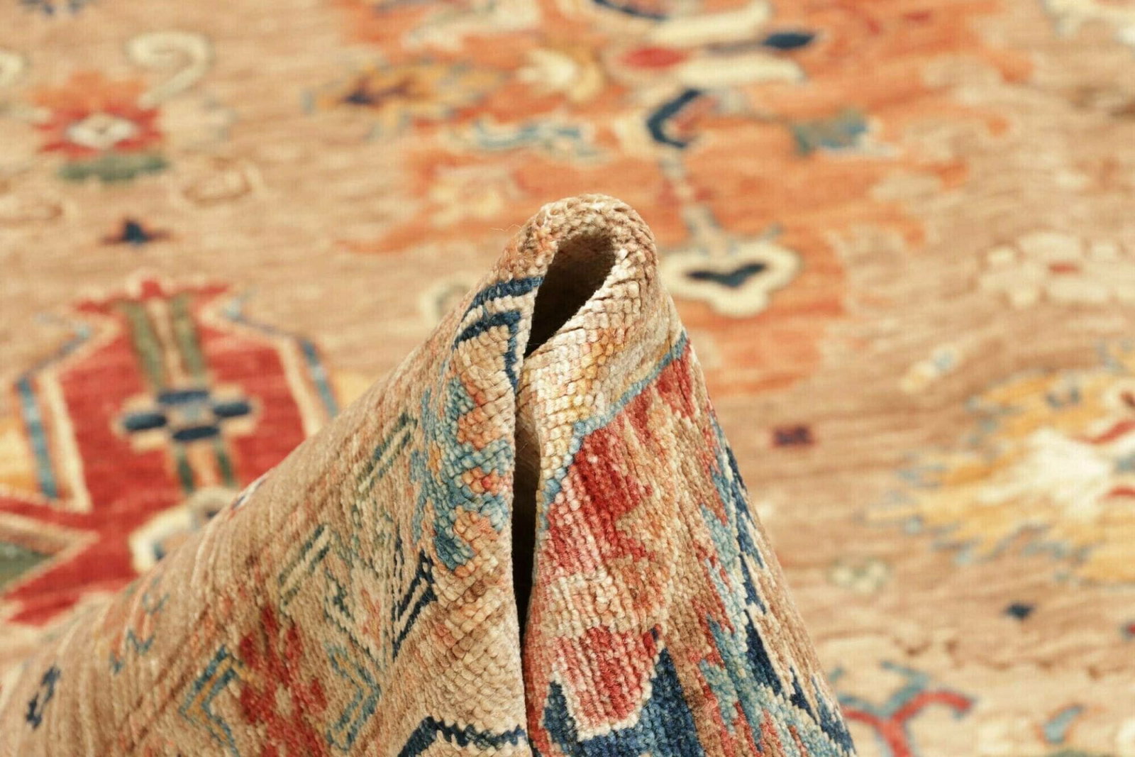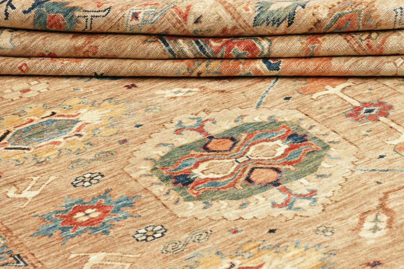 Der verwendete Werkstoff ist von höchster Qualität und wird sorgfältig ausgewählt, um sowohl Komfort als auch Langlebigkeit zu gewährleisten. Dieser Teppich ist aus 100 % natürlicher Wolle gefertigt, die für ihre Robustheit und ihren natürlichen Glanz bekannt ist. Wolle ist nicht nur ein erstklassiges Material für einen Teppich, sondern auch temperaturregulierend und schmutzabweisend. Dies macht den Kazak Teppich ideal für den täglichen Gebrauch in jedem Raum Ihres Zuhauses.