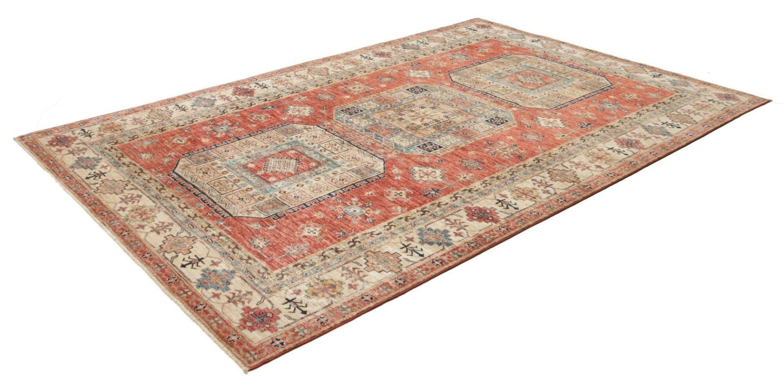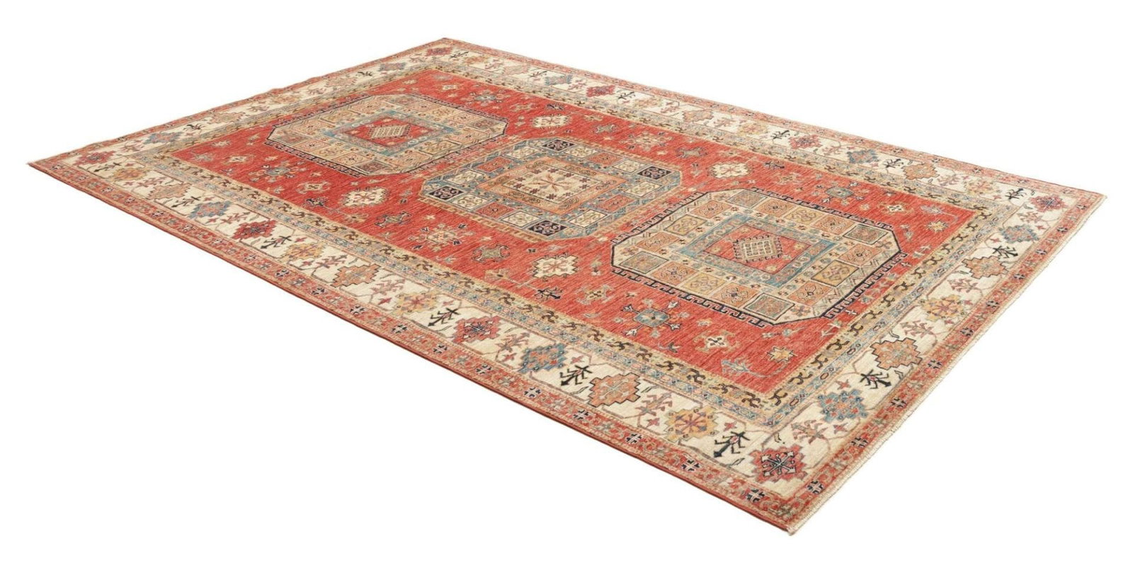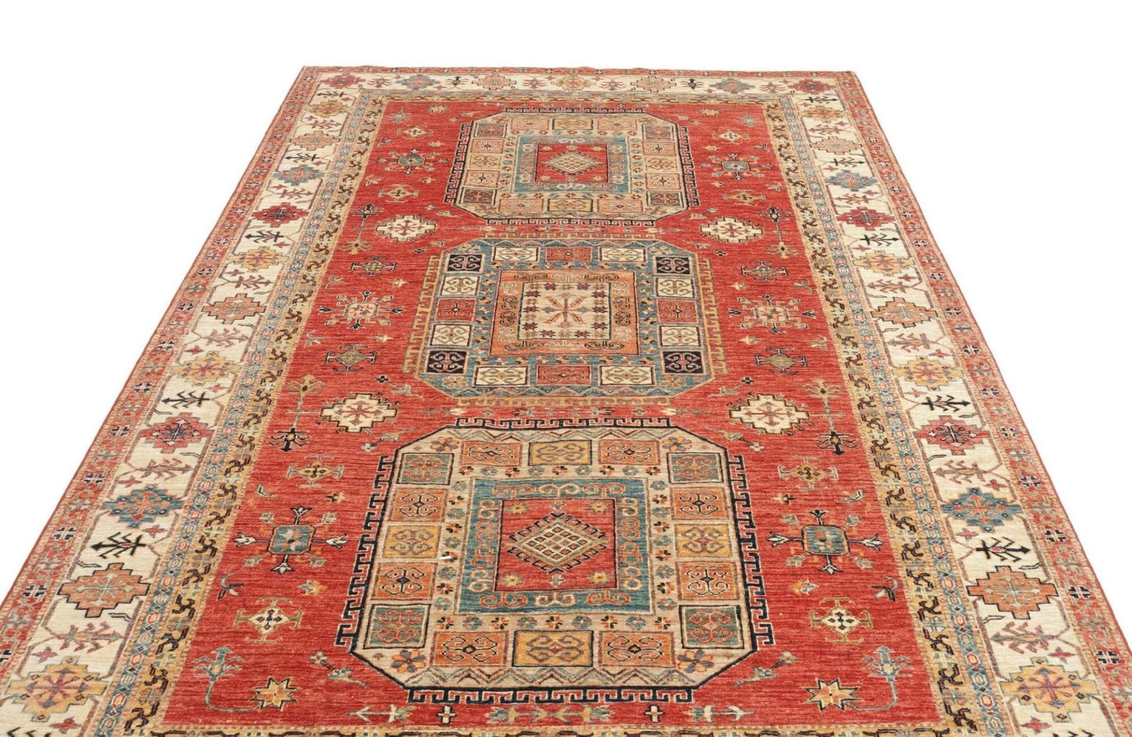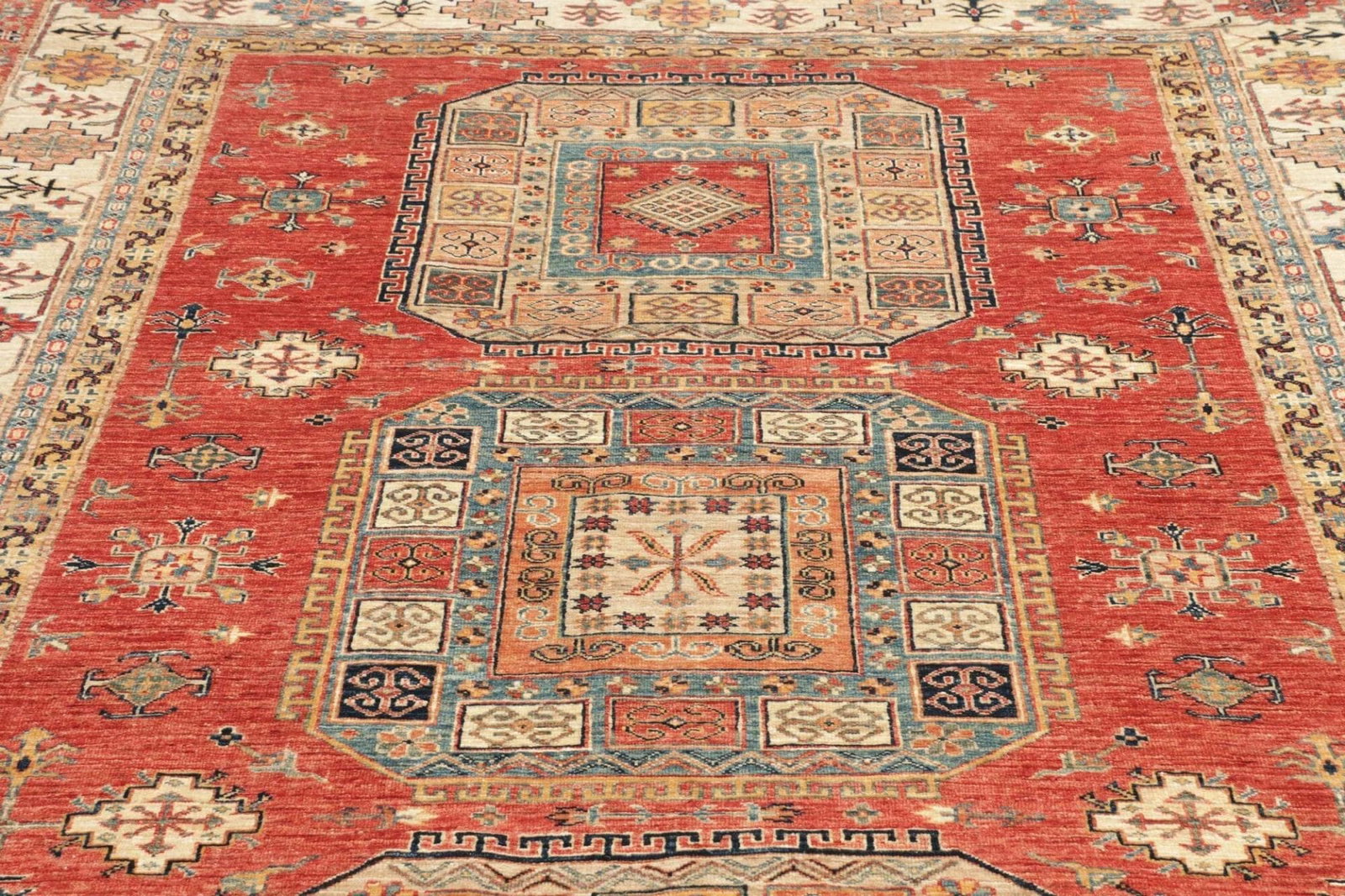 Kazak Teppich | Knotendichte: ca. 200.000 Knoten/m² | Material: 100% Schurwolle | Größe: 203×300 cm | Herkunft: Pakistan | Zustand: Handgeknüpft | Provenienz: Kazak
