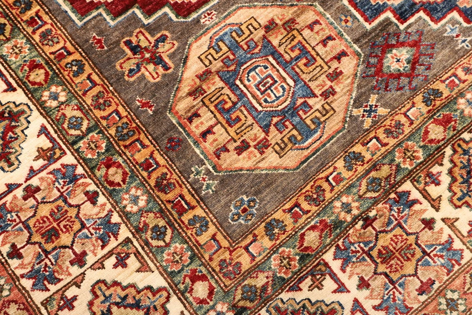 Ein herausragendes Merkmal dieses Kazak Teppichs ist seine Vielseitigkeit. Egal, ob Sie ihn im Wohnbereich, im Schlafzimmer oder in einem Foyer platzieren – er verleiht jedem Raum eine besondere Atmosphäre. Die Kombination aus hochwertiger Wolle und der einzigartigen Knotentechnik sorgt dafür, dass der Teppich sowohl optisch als auch in der Nutzung langfristig Freude bereitet.