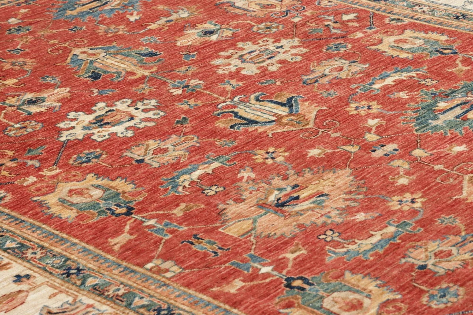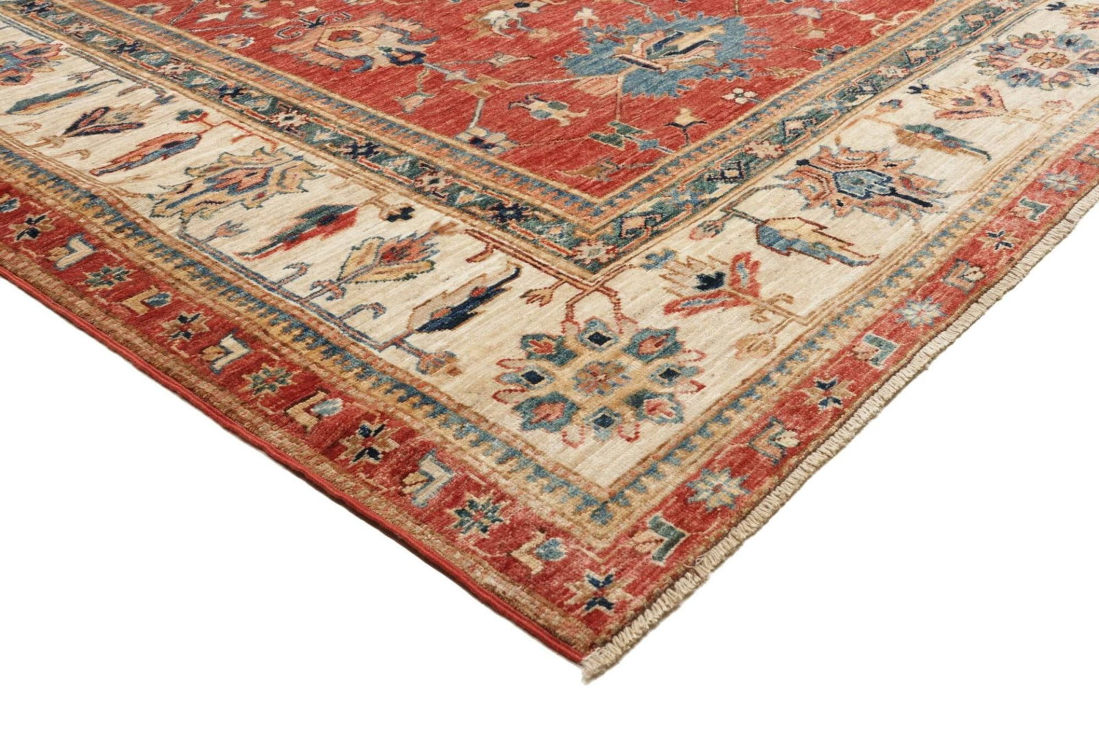 Ein weiterer Vorteil des Kazak Teppichs ist seine Vielseitigkeit. Er passt sowohl zu modernen als auch zu klassischen Einrichtungsstilen und kann in verschiedenen Wohnbereichen eingesetzt werden – sei es im Wohnraum, Büro oder Flur. Dank seiner robusten Bauweise ist er zudem ideal für stark frequentierte Räume geeignet, ohne an Schönheit und Qualität zu verlieren.
