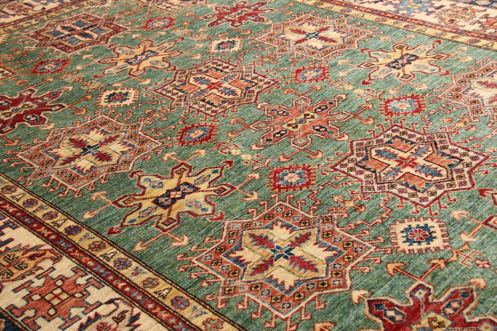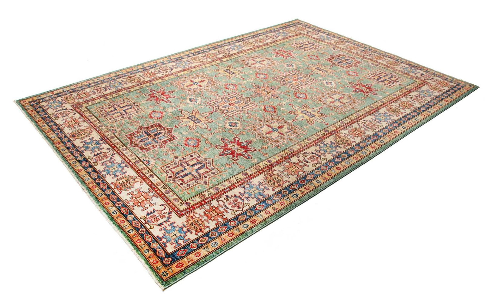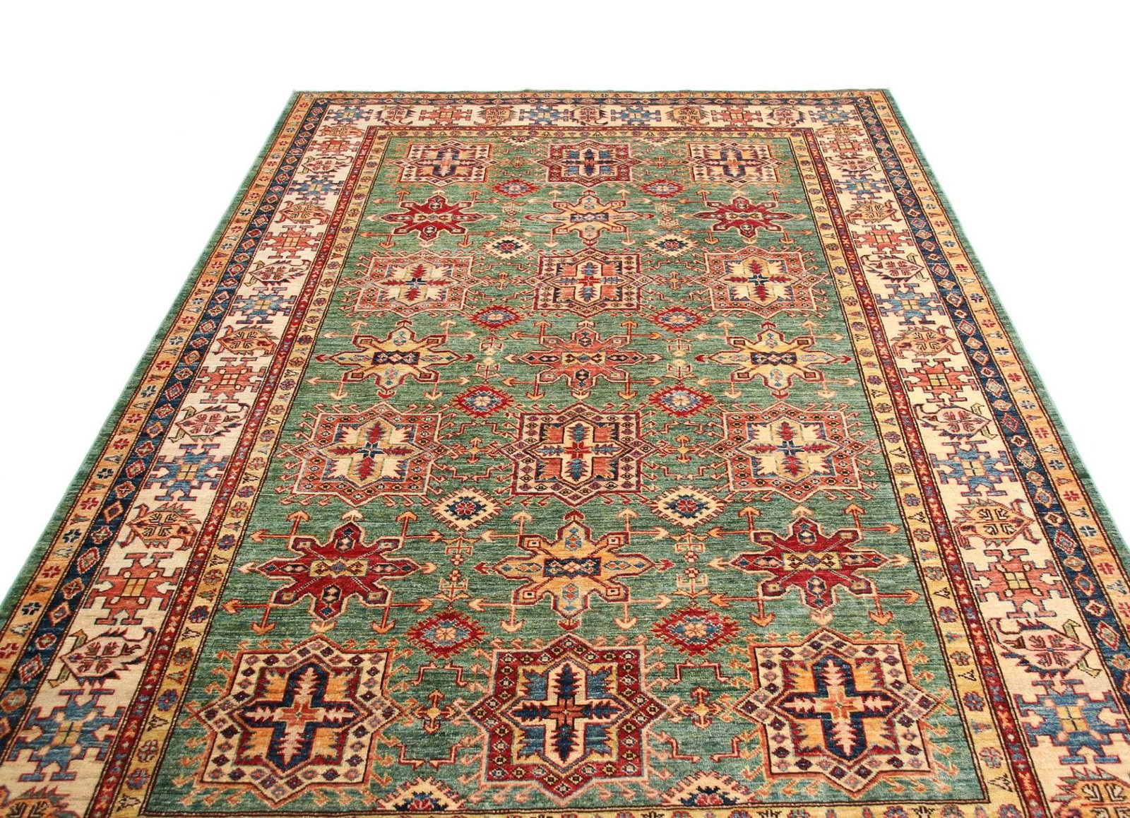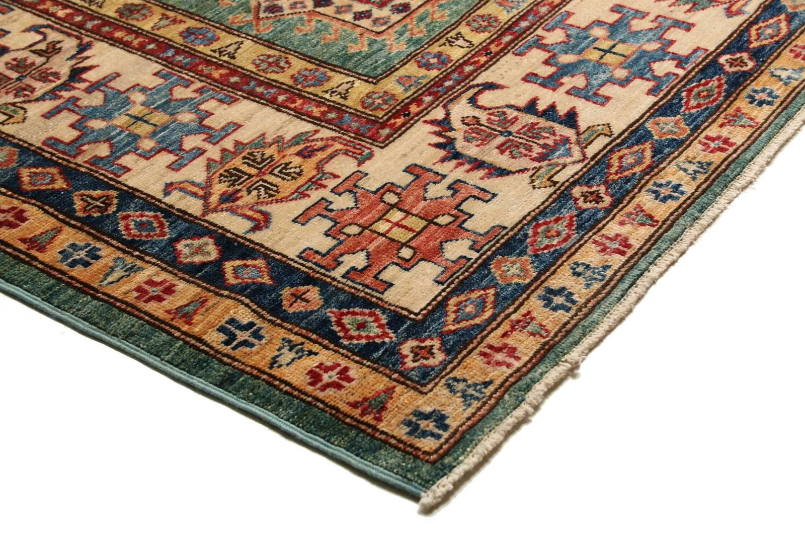 Kazak Teppich | Knotendichte: ca. 200.000 Knoten/m² | Material: 100% Schurwolle | Größe: 210 x 306 cm | Herkunft: Pakistan | Zustand: Handgeknüpft | Muster: Geometrische Muster und Figuren