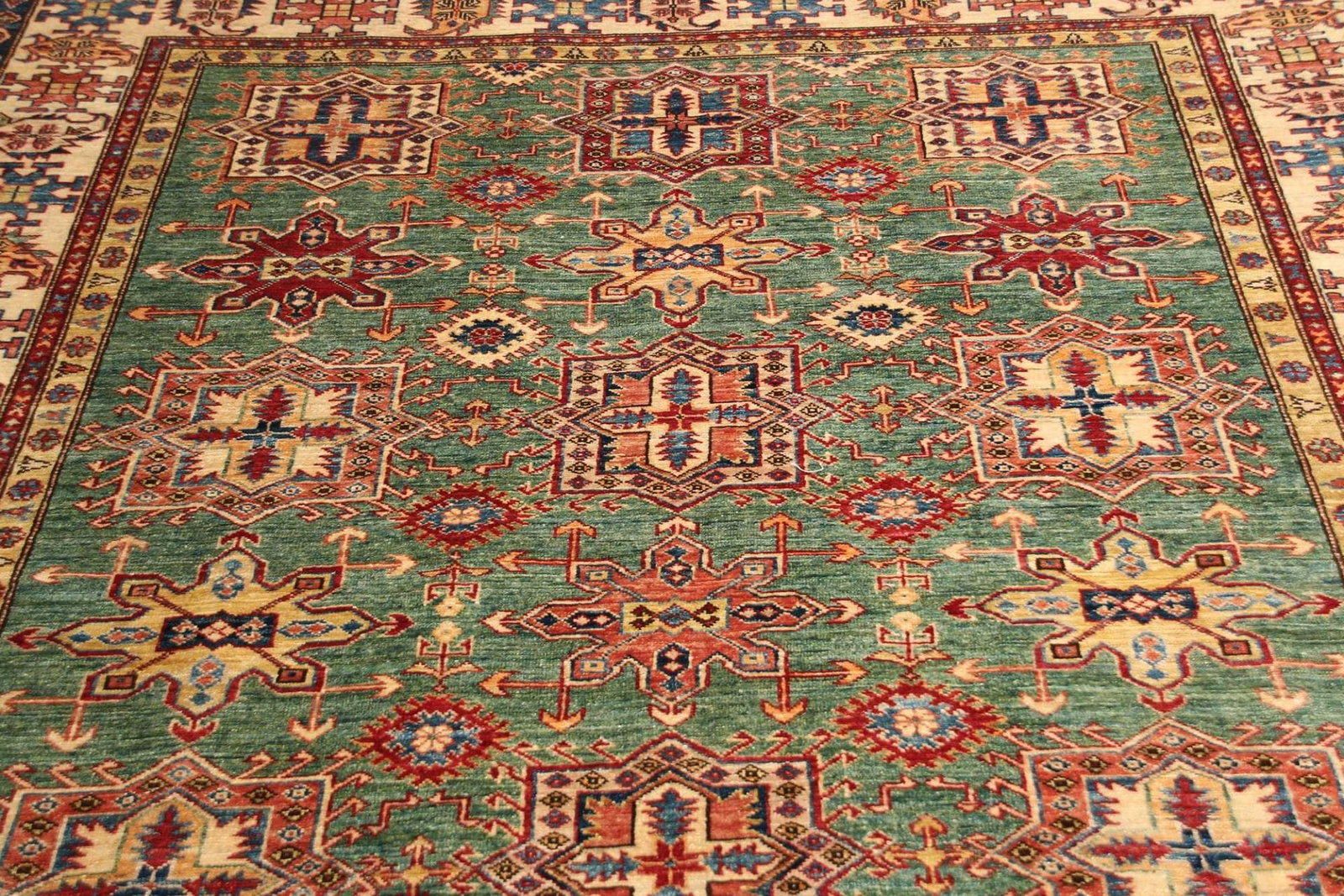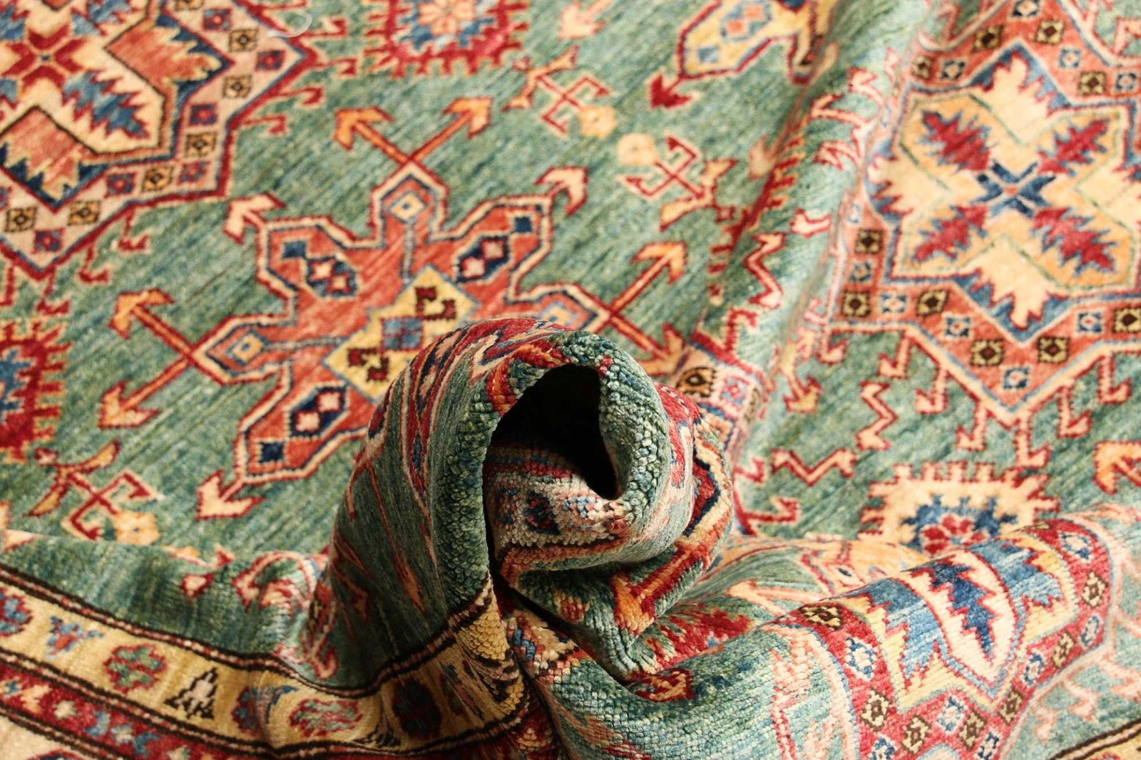 Ein handgeknüpfter Teppich erfordert hohe Fachkenntnis und viel Geduld, da jeder Knoten von Hand gesetzt wird. Dies macht jeden Kazak Teppich zu einem Unikat, das die Leidenschaft und das handwerkliche Können des Teppichknüpfers widerspiegelt.