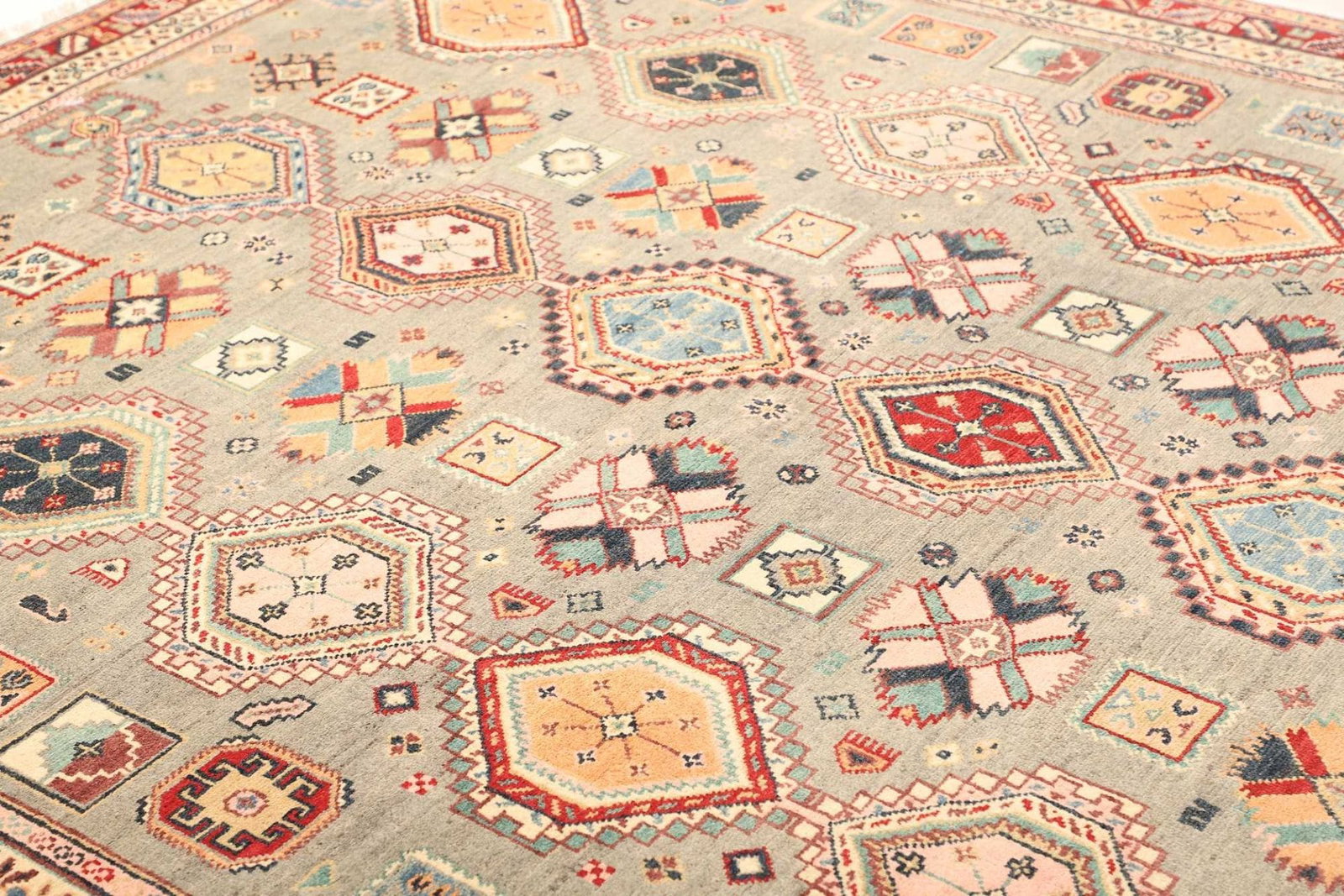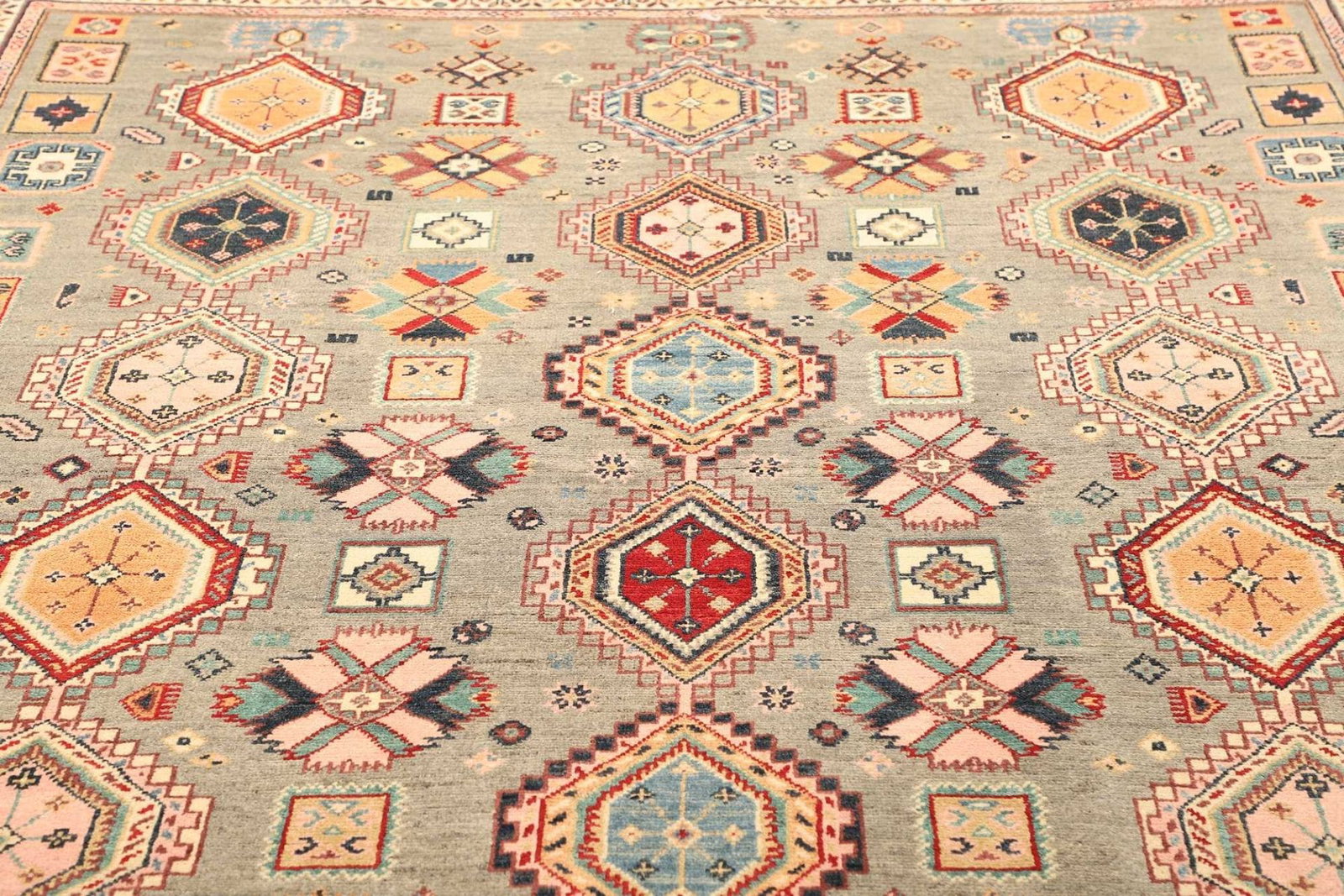 Kazak Teppich – Handgeknüpft, geometrisches Muster, Orientteppich