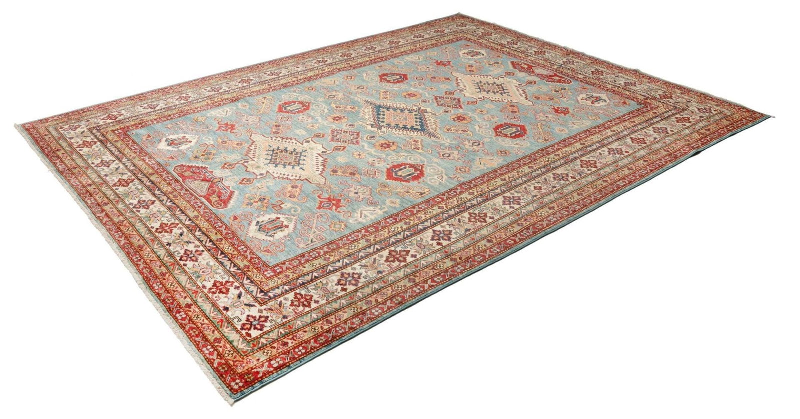 Kazak Teppich | Knotendichte: ca. 200.000 Knoten/m² | Material: 100% Schurwolle | Kette: 100% Baumwolle | Größe: 245 x 319 cm | Herkunft: Pakistan | Zustand: Handgeknüpft und hochwertig