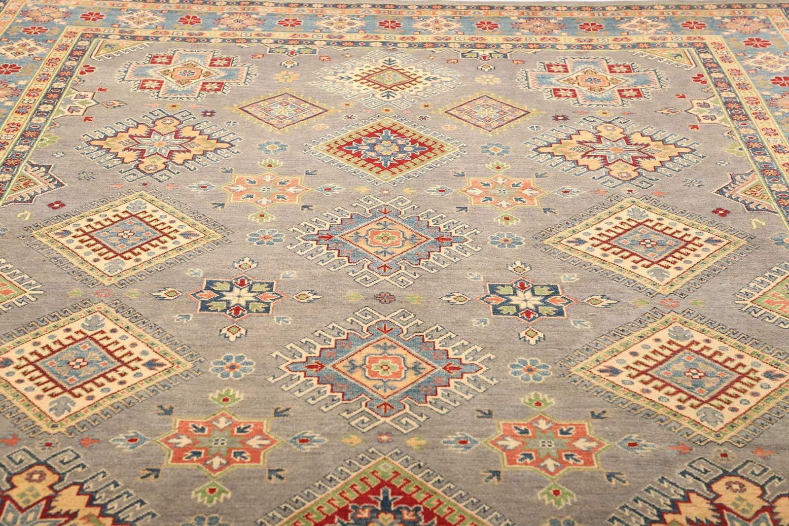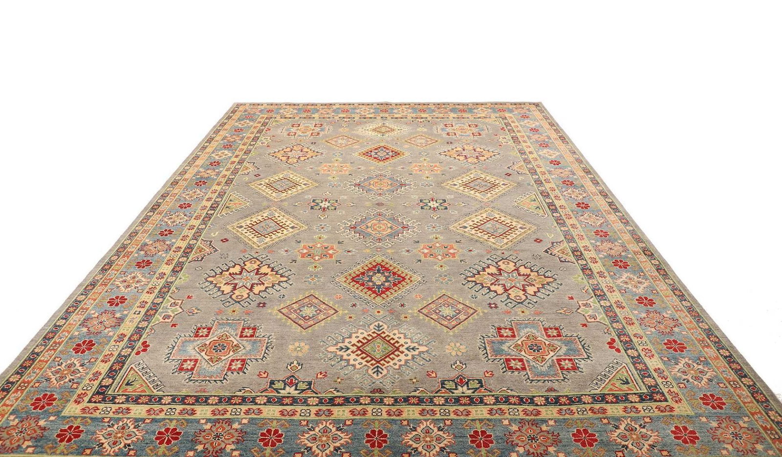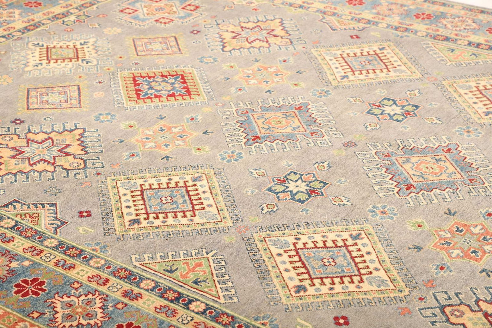 Kazak Teppich | Knotendichte: ca. 100.000 Knoten/m² | Material: 100% Schurwolle | Größe: 246 x 350 cm | Zustand: Handgeknüpft | Herkunft: Afghanistan | Muster: Geometrisch