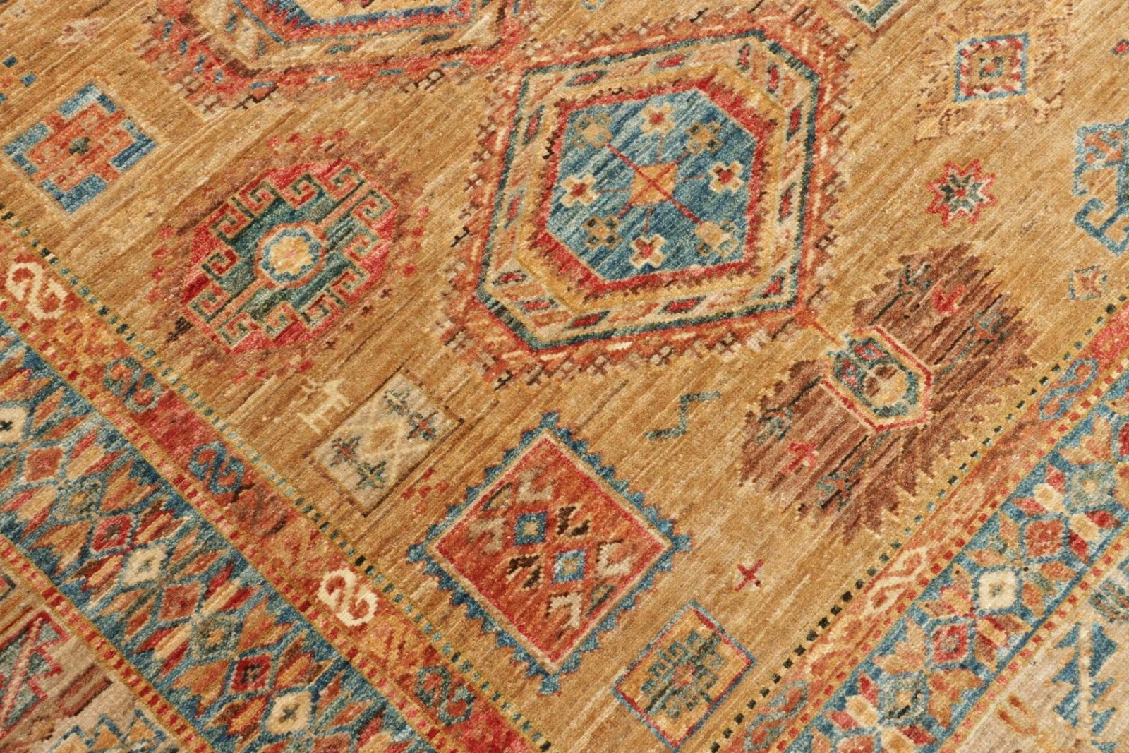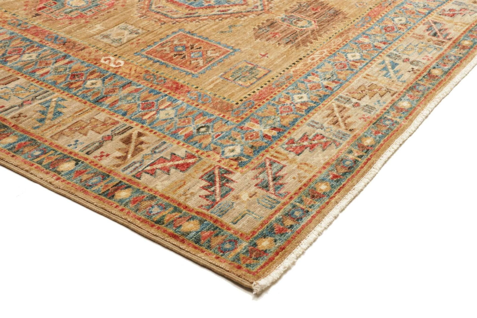 Der Kazak Teppich ist aus erlesenen Naturmaterialien gefertigt, die sowohl eine hohe Strapazierfähigkeit als auch eine angenehme Haptik garantieren. Dank der handgeknüpften Verarbeitung ist jeder einzelne Knoten ein Zeugnis der Kunstfertigkeit der Teppichknüpfer. Diese traditionelle Methode gewährleistet, dass jeder Teppich ein Unikat ist, das durch seine Laiendetails und das aufwendige Muster besticht. Die Knotendichte dieses Teppichs ist optimal, um sowohl die Qualität als auch die Strapazierfähigkeit zu gewährleisten und sorgt dafür, dass der Teppich auch in stark frequentierten Bereichen lange Freude bereitet.