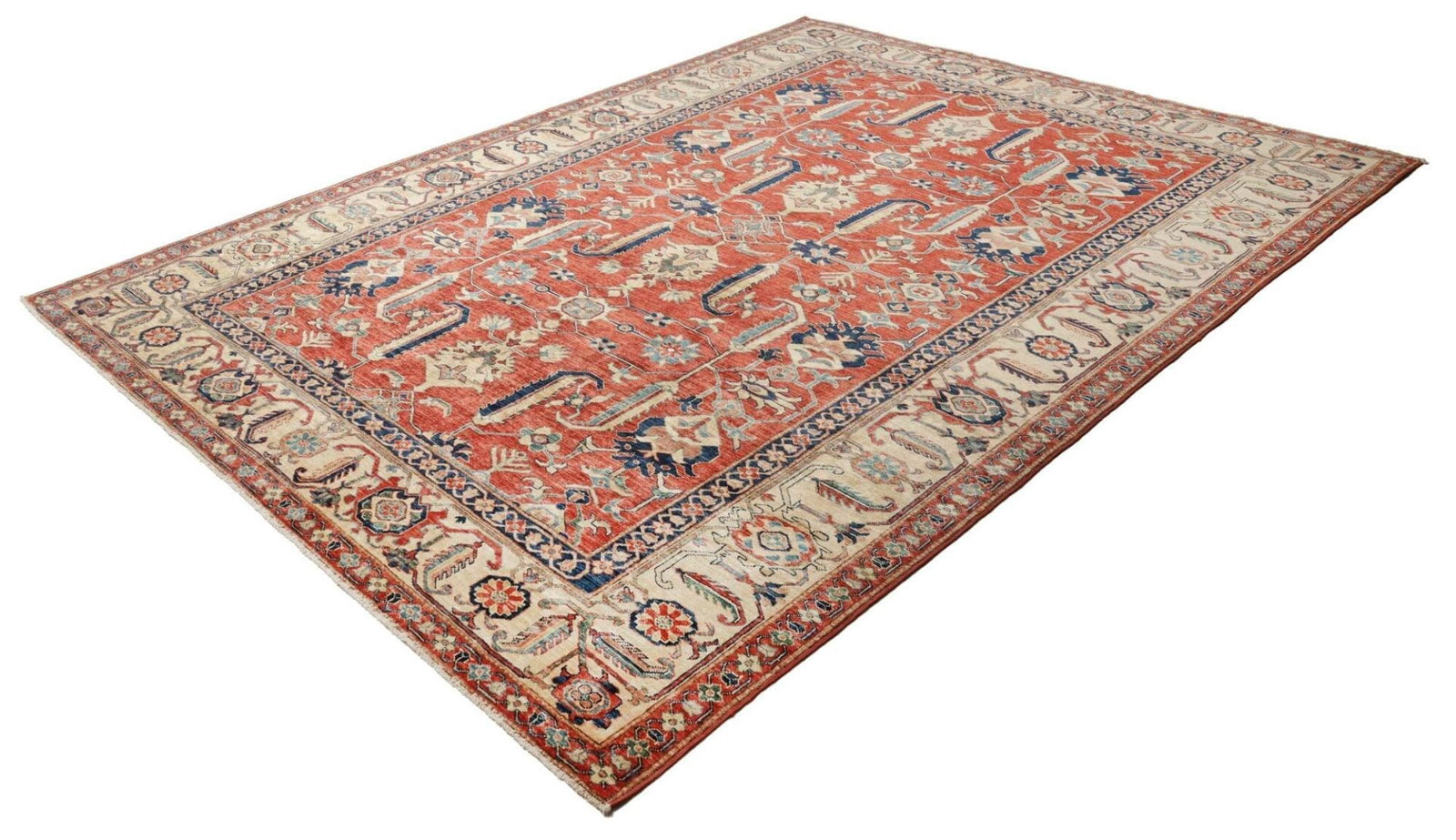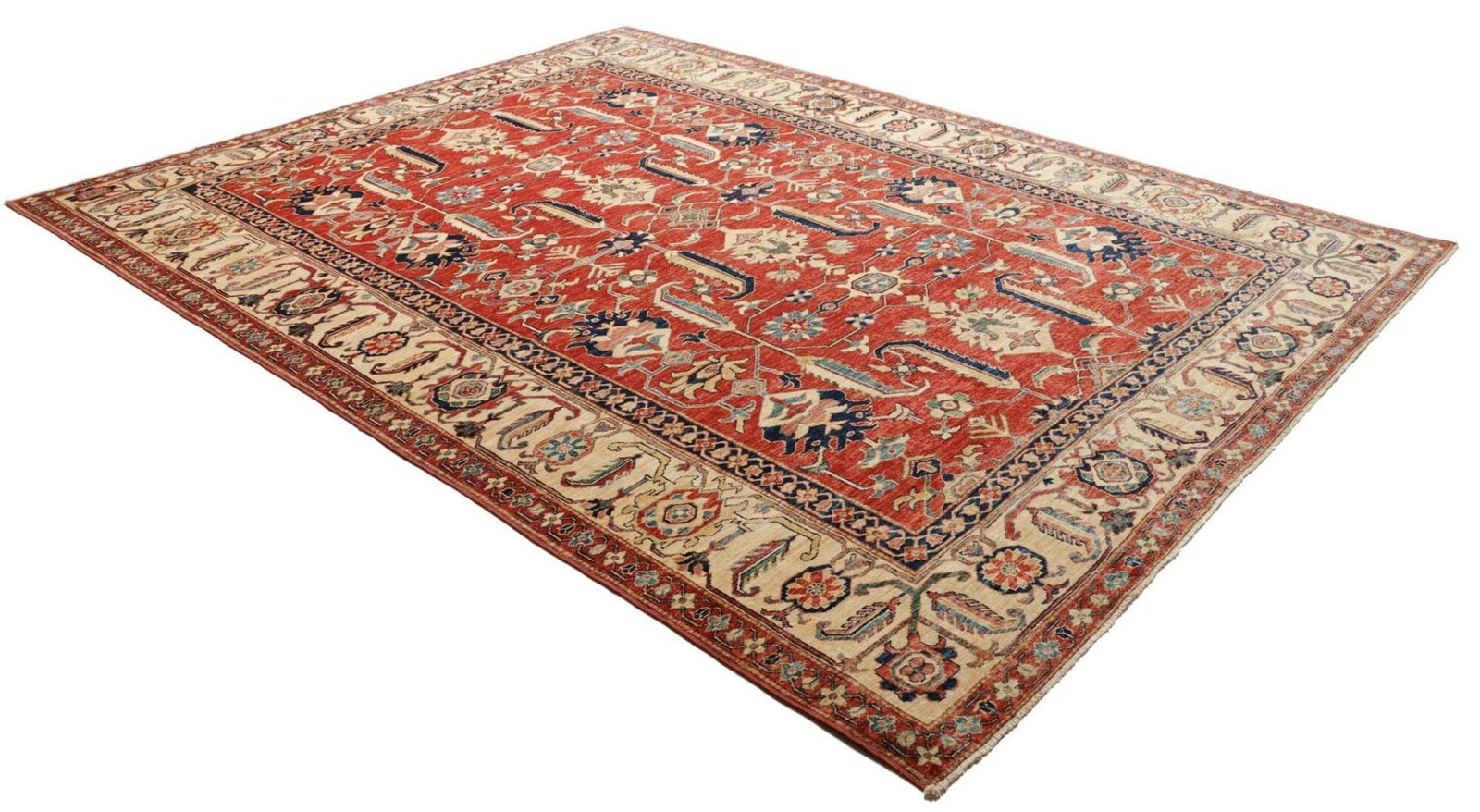 Der Kazak Teppich wird aus hochwertiger Wolle hergestellt, die für ihre Strapazierfähigkeit und Langlebigkeit bekannt ist. Wolle hat zudem den Vorteil, dass sie sich angenehm anfühlt und gleichzeitig isolierende Eigenschaften besitzt, was den Teppich sowohl im Winter als auch im Sommer behaglich macht. Durch das handknüpfen wird jeder Teppich zu einem Unikat, da hierbei die Knotendichte je nach Region und Muster variiert. Dies sorgt dafür, dass die Teppiche nicht nur schön anzusehen sind, sondern auch über viele Jahre hinweg ihre Farbintensität und Form behalten.
