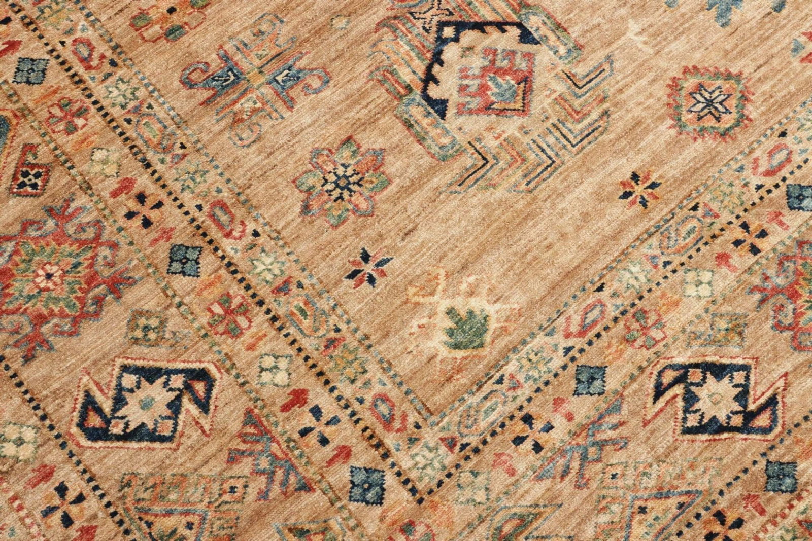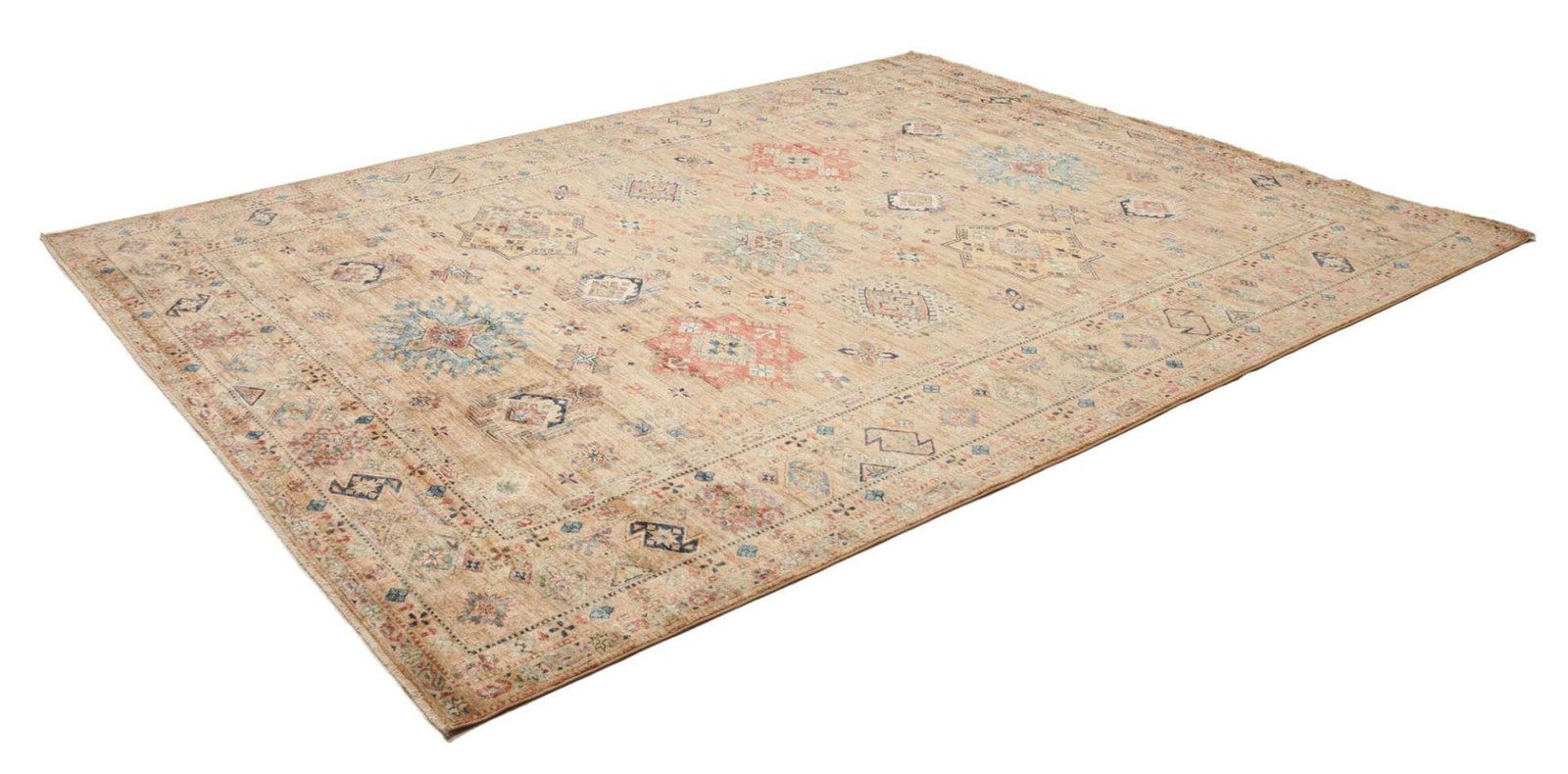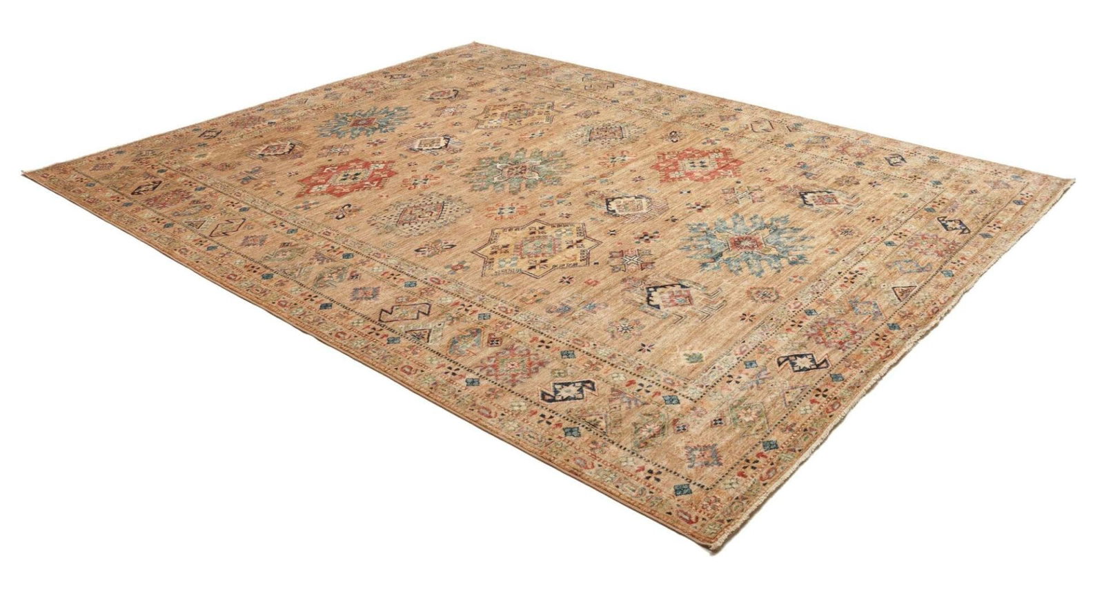 Kazak Teppich | Knotendichte: ca. 200.000 Knoten/m² | Muster: Geometrische Figuren | Größe: 252 x 315 cm | Material: 100% Schurwolle im Flor, 100% Baumwolle in der Kette | Zustand: Handgeknüpfte Qualität | Ursprung: Pakistan
