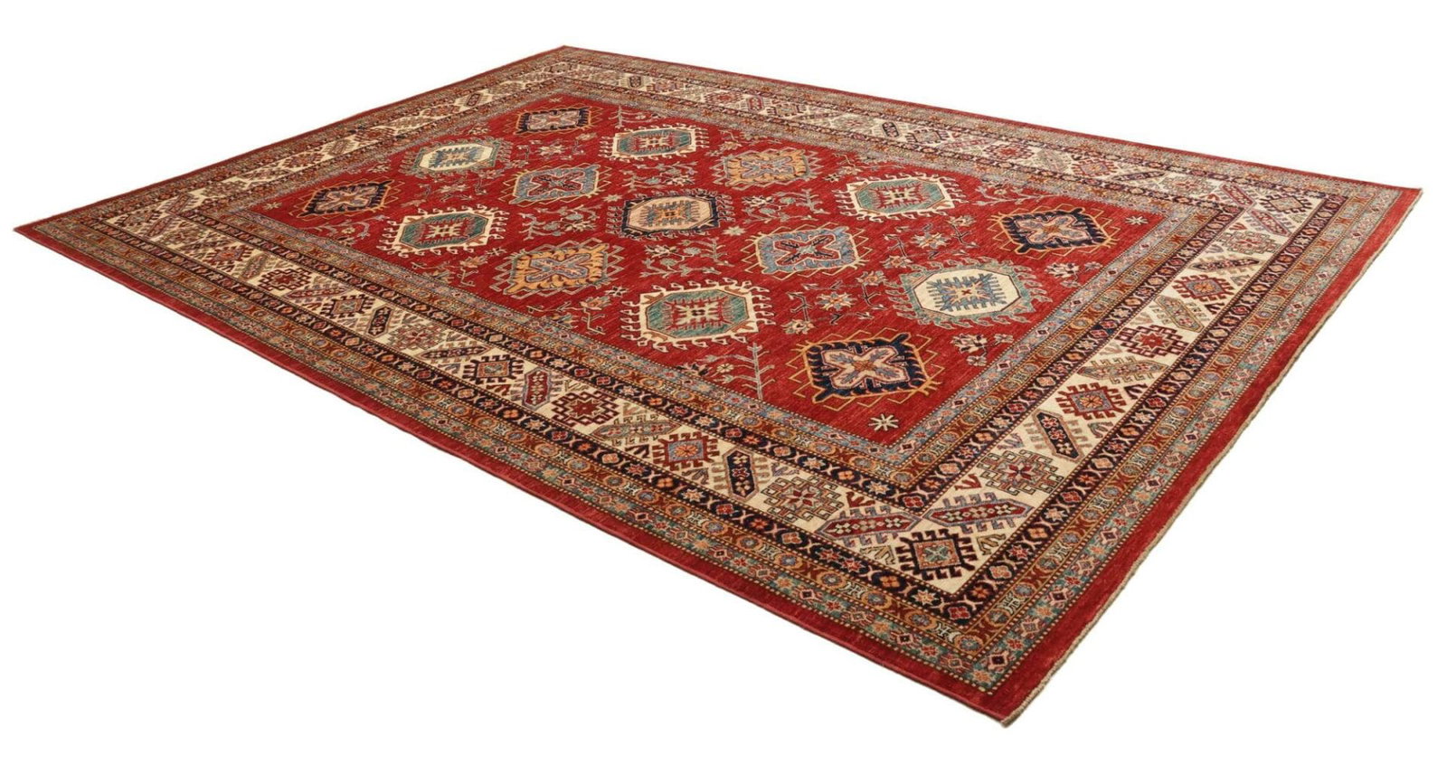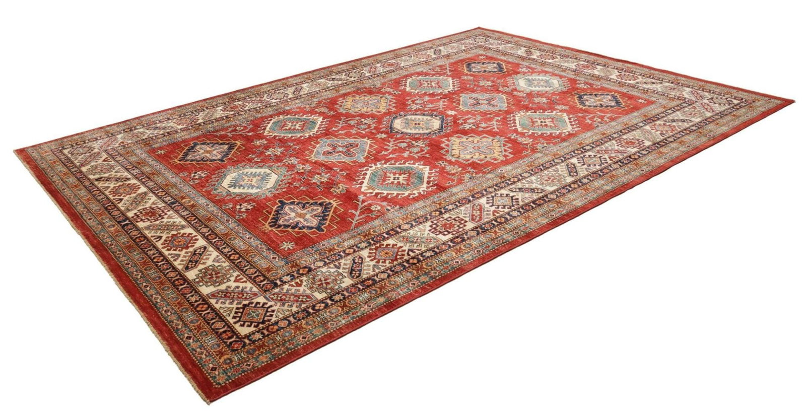 Kazak Teppich | Größe: 252 x 354 cm | Knotendichte: ca. 200.000 Knoten/m² | Flor: 100% Schurwolle | Kette: 100% Baumwolle | Herkunft: Pakistan | Verarbeitung: Handgeknüpft | Zustand: Sehr gut