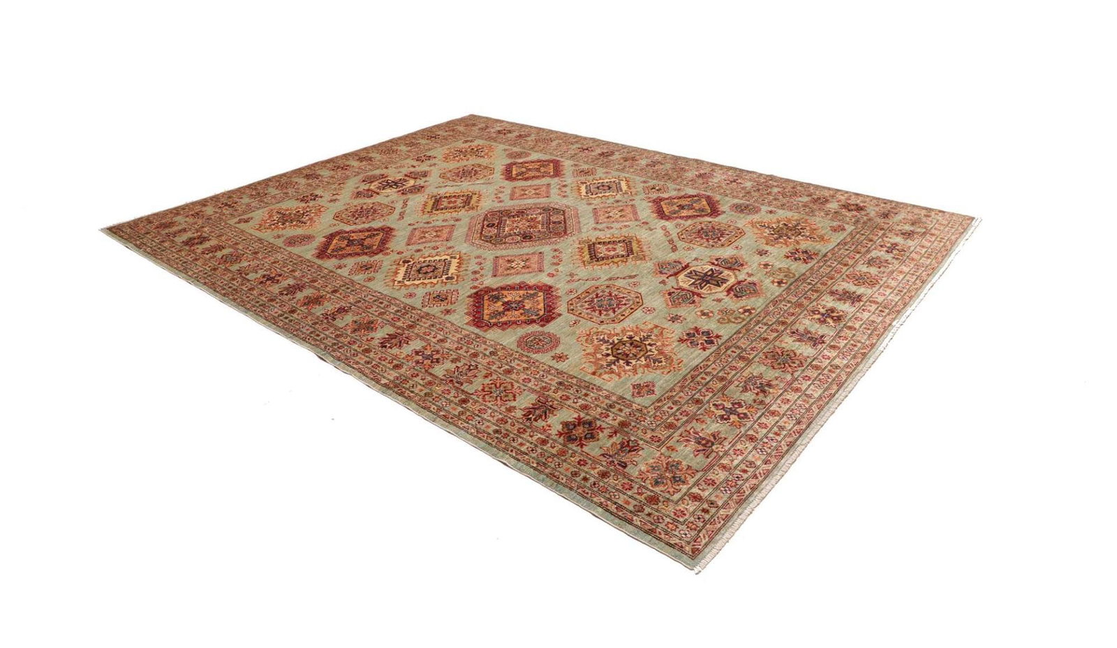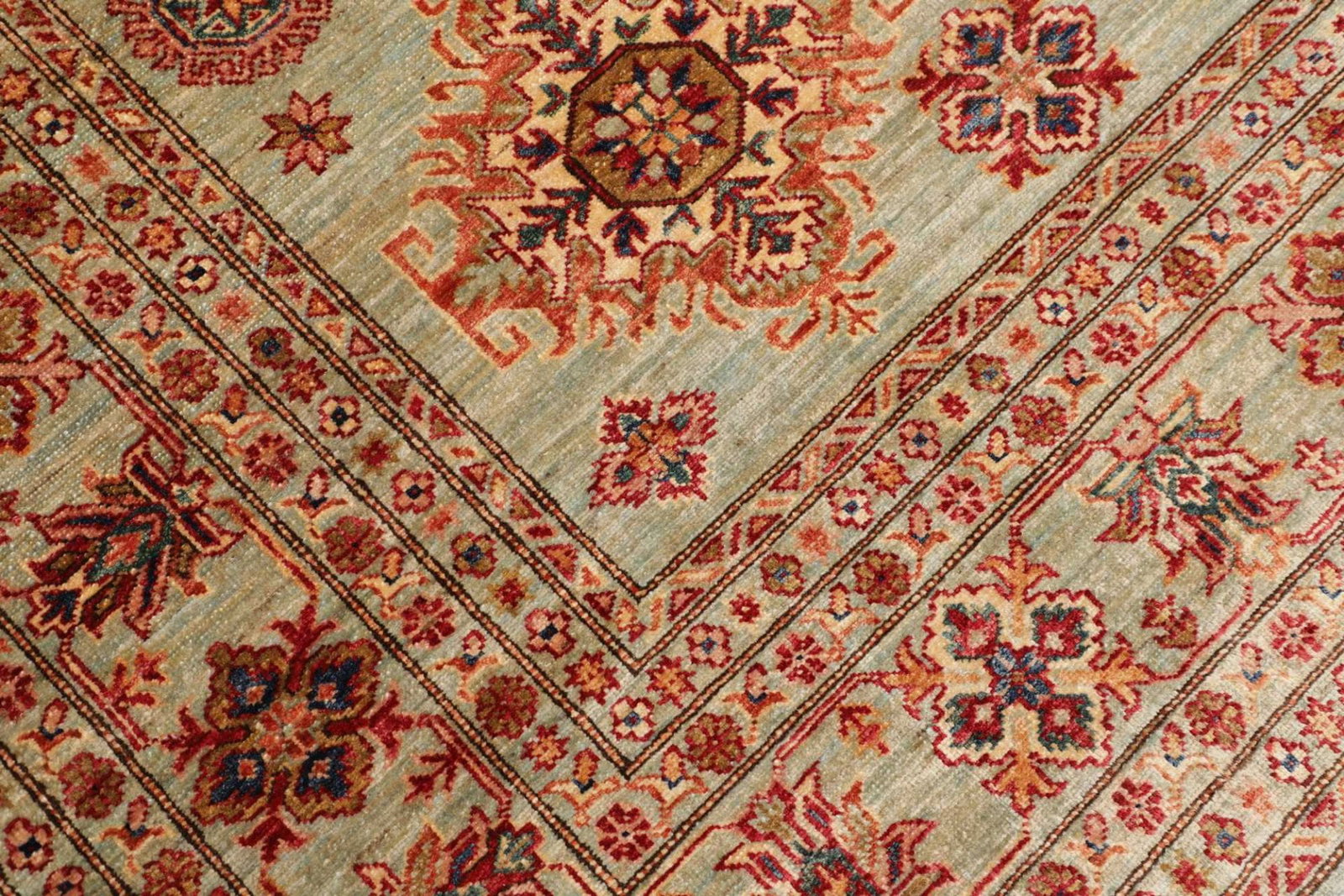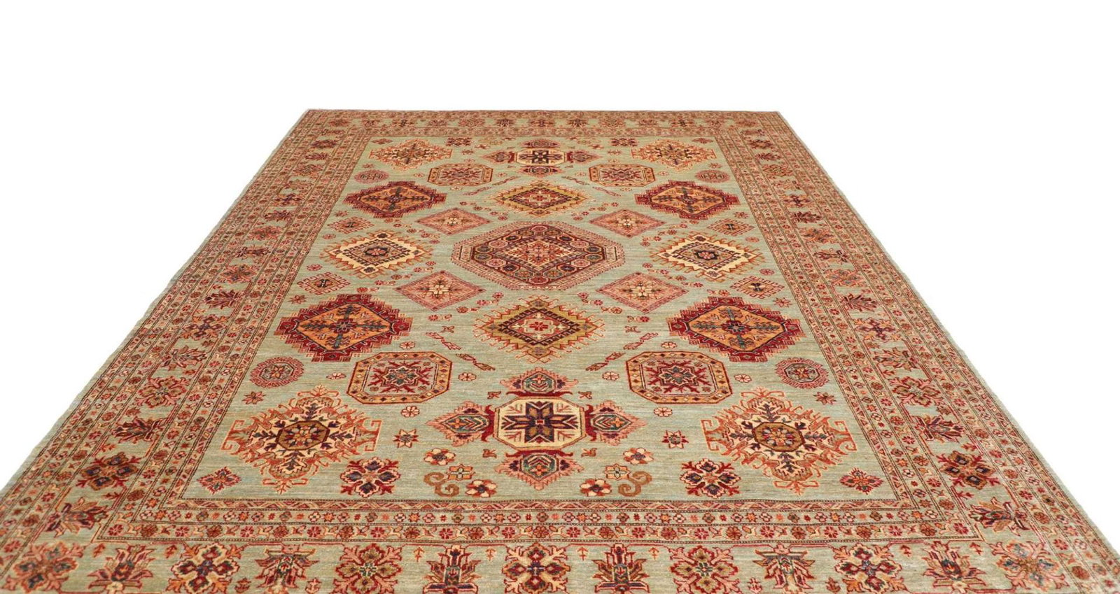 Kazak Teppich | Größe: 253 x 310 cm | Provenienz: Kazak | Herkunft: Pakistan | Knotendichte: ca. 200.000 Knoten/m² | Flor: 100% Schurwolle | Kette: 100% Baumwolle | Höhe: ca. 5-7 mm | Handgeknüpfte Qualität | Geometrische Muster und Figuren | Angenehme Haptik und schalldämpfend