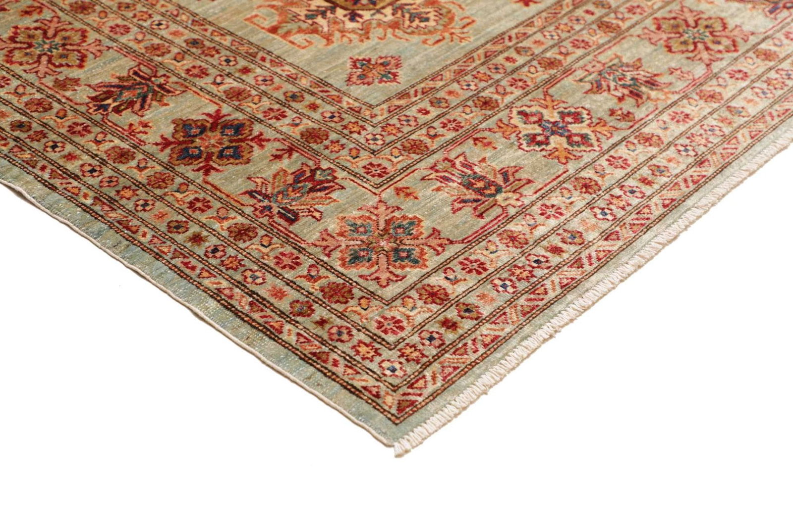 Der Kazak Teppich ist ein wahres Meisterwerk der Handwerkskunst, das nicht nur den Raum verschönert, sondern auch zu einem zeitlosen Erbstück wird. Dieser handgeknüpfte Orientteppich besticht durch seine faszinierenden geometrischen Muster, die lebendigen Farben und die hochwertige Verarbeitung. Die Knotendichte ist ein Indikator für die hohe Qualität des Teppichs, und sie sorgt dafür, dass die Details des Designs klar und deutlich hervortreten.